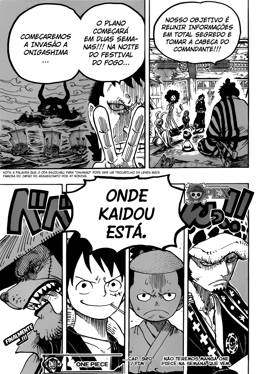 Boa leitura do mangá One Piece – Capítulo 920 , Não se esqueça de curtir e compartilhar. O Mangá One Piece é sempre atualizado no Pizzaria Scan. Não deixe de conferir também outras atualizações de mangá. A lista completa de mangás do Pizzaria Scan está no menu..