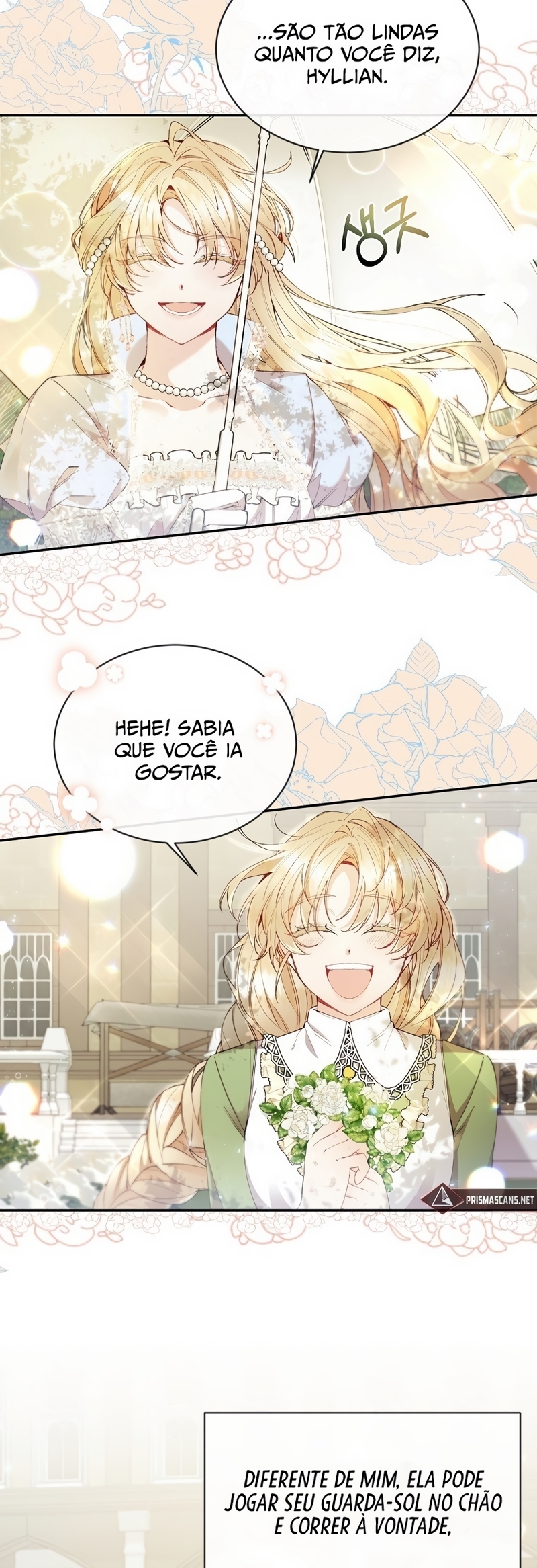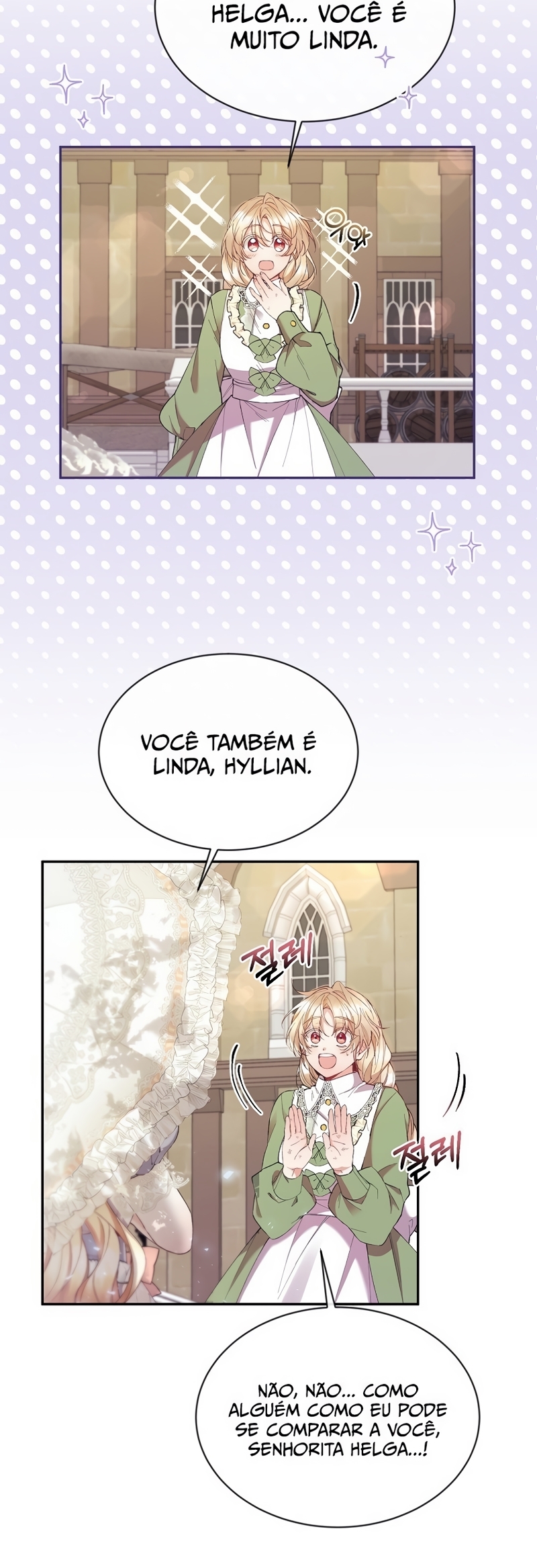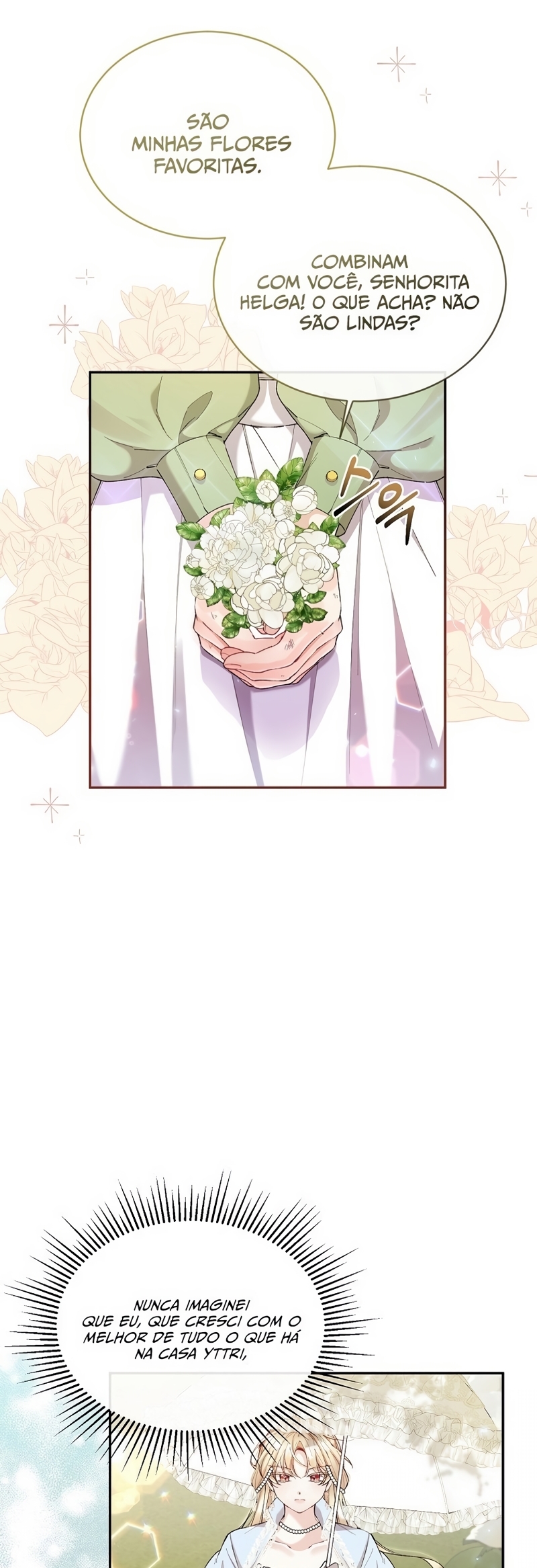 Helga Yttri, uma senhorita meio nobre que herdou o sangue de uma mera empregada. Uma filha bastarda que foi trocada pela empregada do Duque; uma filha falsa.Helga deu tudo de si para ser reconhecida como a filha verdadeira. “Vossa Graça! A verdadeira jovem senhorita está viva.”“O nome dela é Hyllian…!” Helga orou a Deus inúmeras vezes para que a verdadeira Jovem Senhorita nunca retornasse.“…não volte, Hyllian.”“Não volte, por favor.” Ela se perguntava se suas orações não chegavam a Deus por ela ser a filha falsa.“Querido Deus, tenho orado incontáveis vezes.”“Te pedi para nunca deixar ‘aquela criança’ voltar.” As orações que ela berrou até ficar rouca foram todas em vão.“A verdadeira filha da Casa Yttri, Hyllian… A filha que irá destruir todo o meu mundo.” A verdadeira filha voltou.