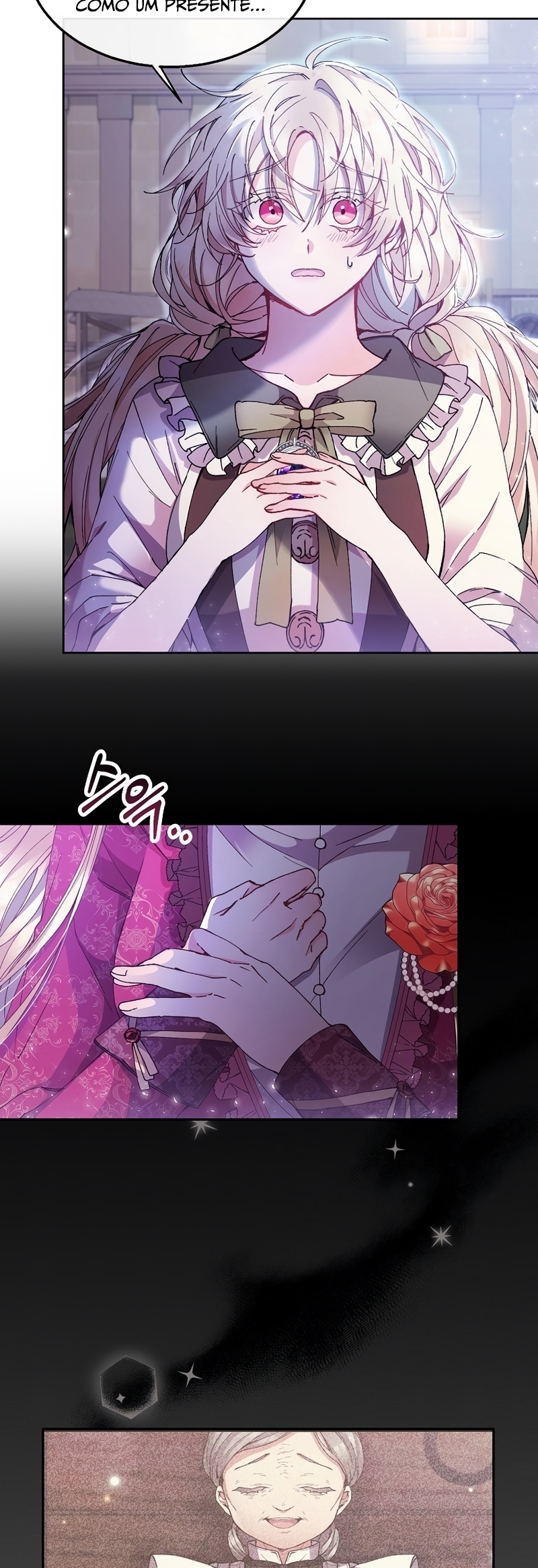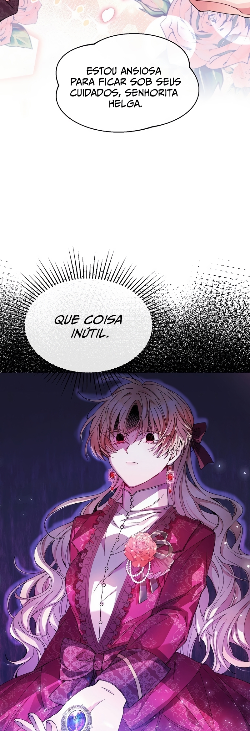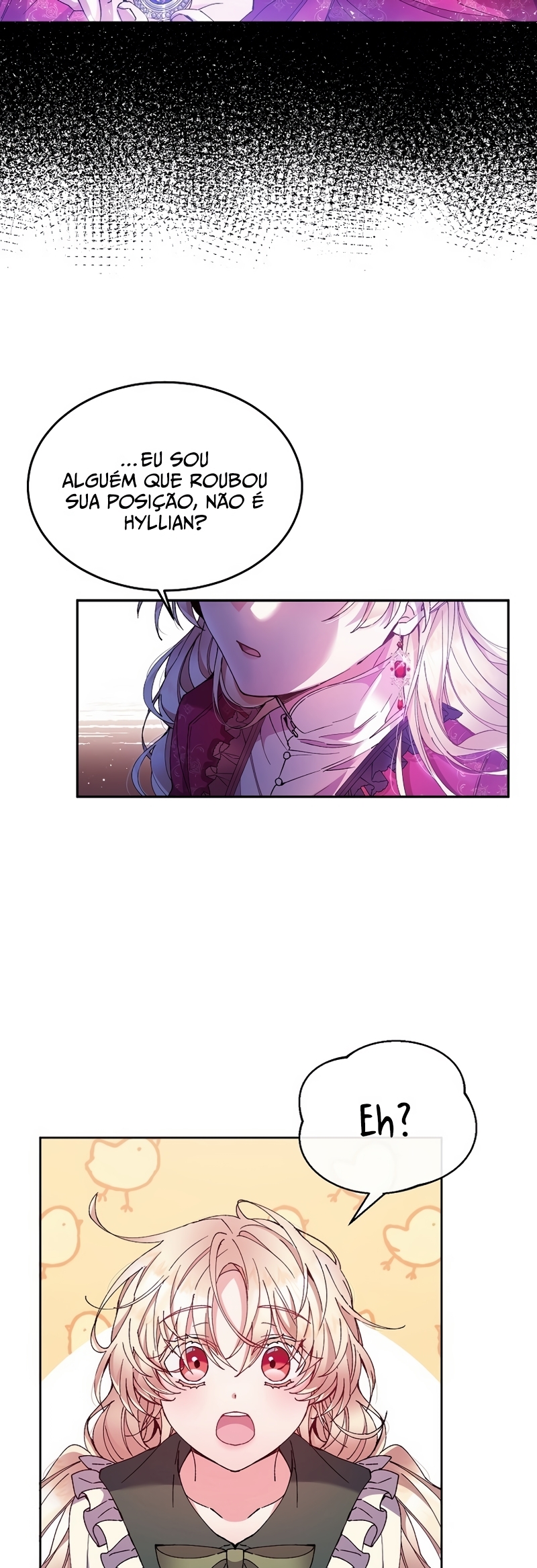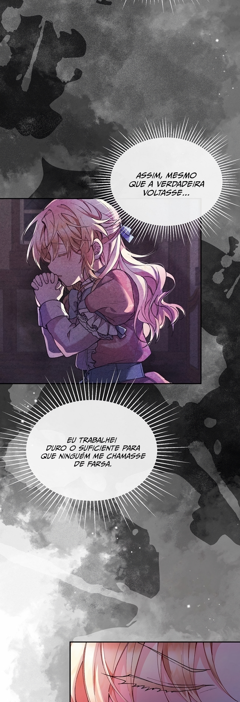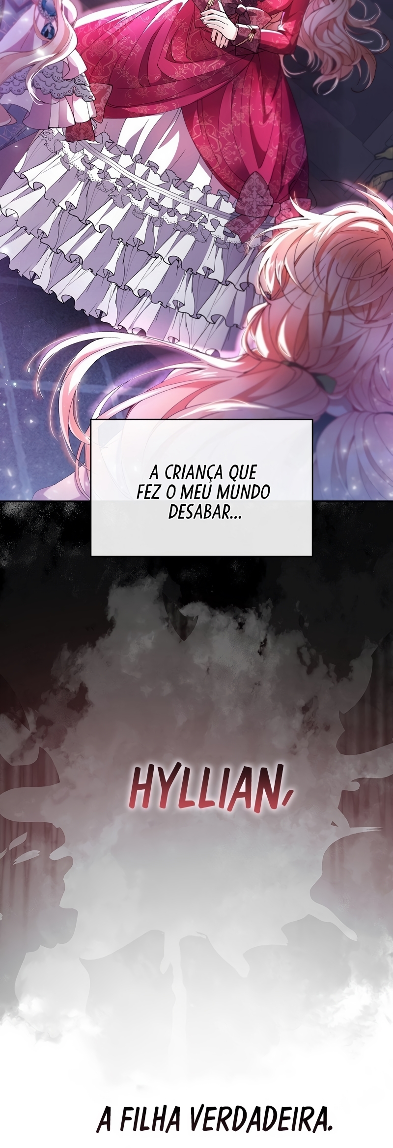 Helga Yttri, uma senhorita meio nobre que herdou o sangue de uma mera empregada. Uma filha bastarda que foi trocada pela empregada do Duque; uma filha falsa.Helga deu tudo de si para ser reconhecida como a filha verdadeira. “Vossa Graça! A verdadeira jovem senhorita está viva.”“O nome dela é Hyllian…!” Helga orou a Deus inúmeras vezes para que a verdadeira Jovem Senhorita nunca retornasse.“…não volte, Hyllian.”“Não volte, por favor.” Ela se perguntava se suas orações não chegavam a Deus por ela ser a filha falsa.“Querido Deus, tenho orado incontáveis vezes.”“Te pedi para nunca deixar ‘aquela criança’ voltar.” As orações que ela berrou até ficar rouca foram todas em vão.“A verdadeira filha da Casa Yttri, Hyllian… A filha que irá destruir todo o meu mundo.” A verdadeira filha voltou.