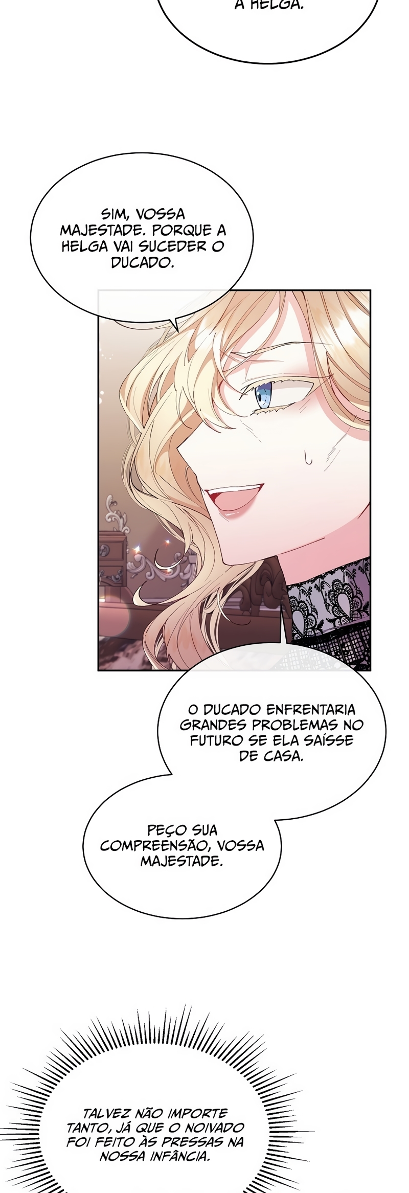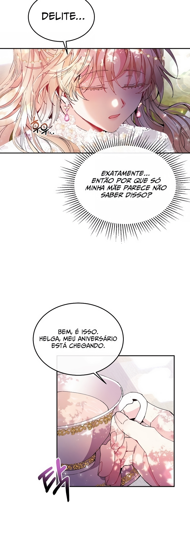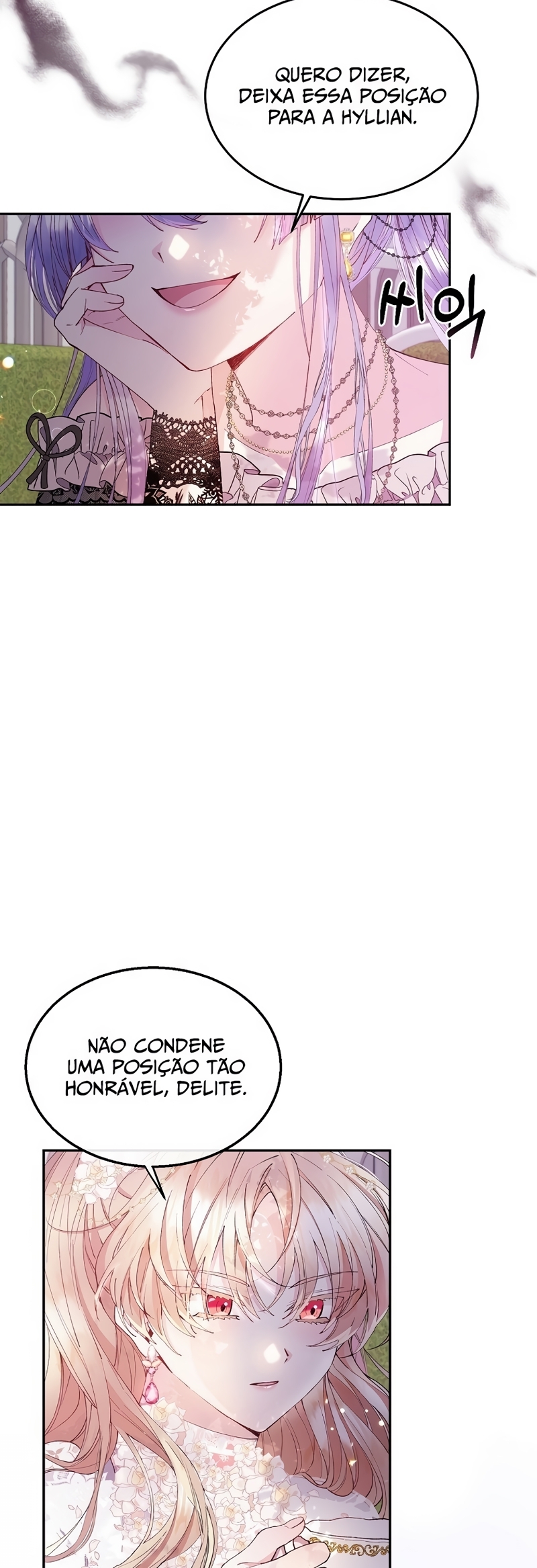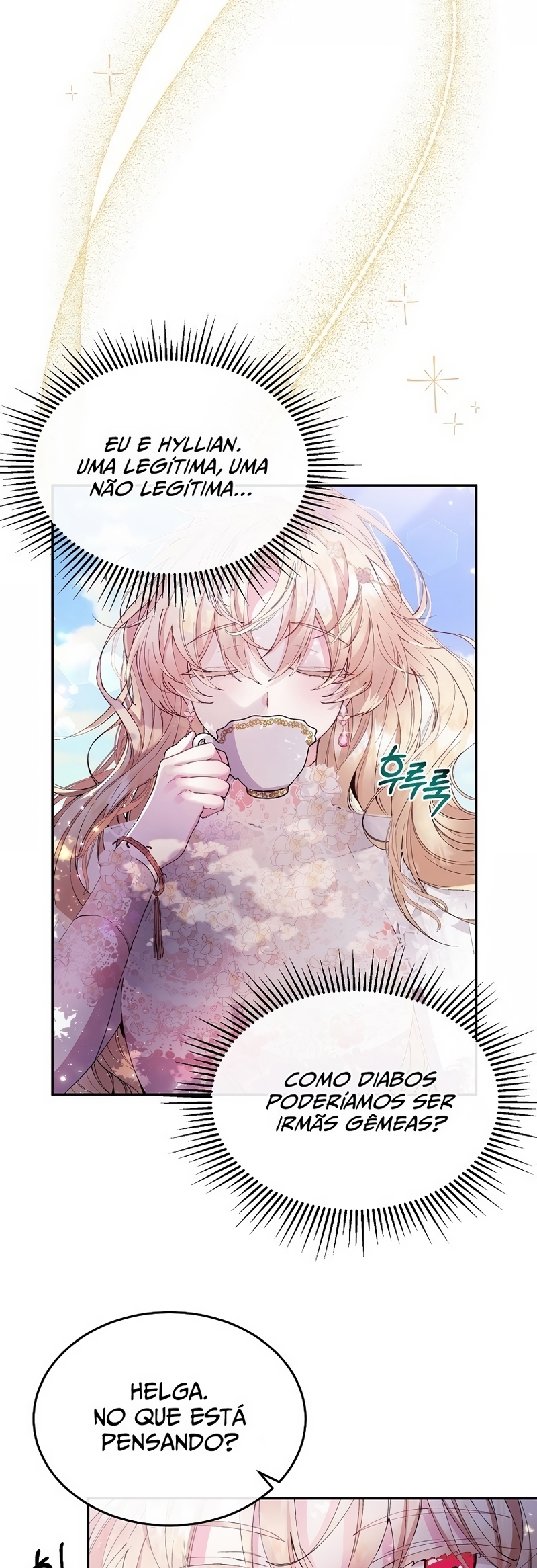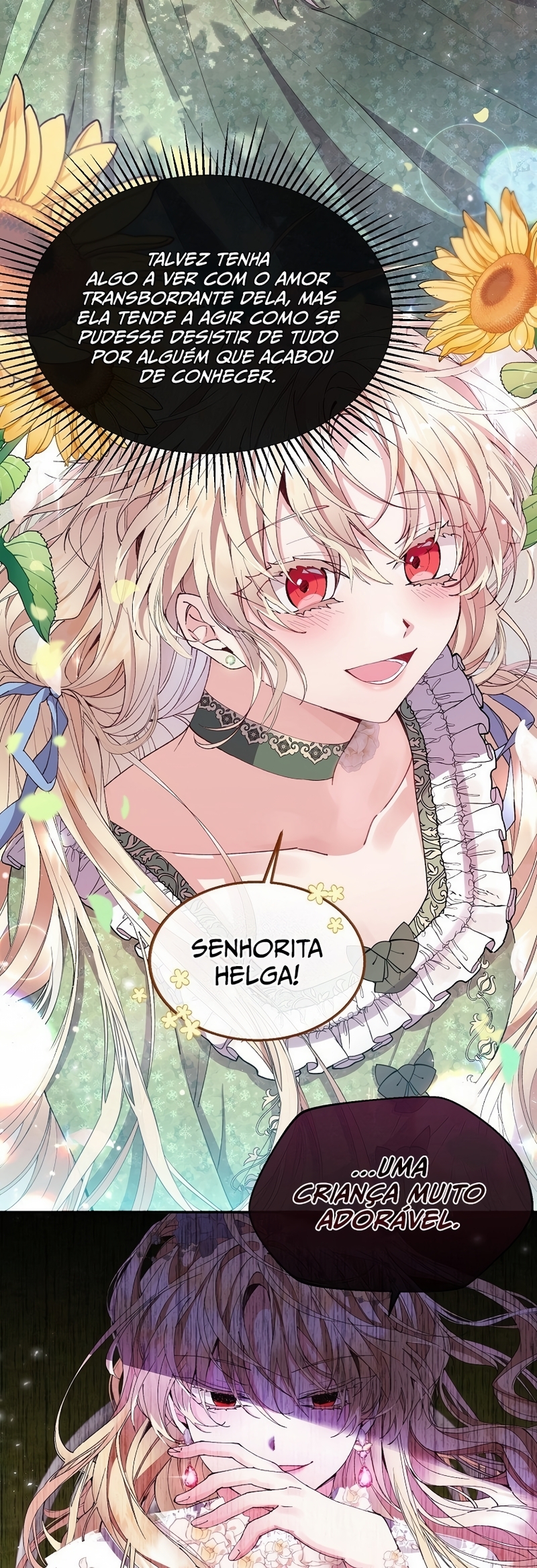 Helga Yttri, uma senhorita meio nobre que herdou o sangue de uma mera empregada. Uma filha bastarda que foi trocada pela empregada do Duque; uma filha falsa.Helga deu tudo de si para ser reconhecida como a filha verdadeira. “Vossa Graça! A verdadeira jovem senhorita está viva.”“O nome dela é Hyllian…!” Helga orou a Deus inúmeras vezes para que a verdadeira Jovem Senhorita nunca retornasse.“…não volte, Hyllian.”“Não volte, por favor.” Ela se perguntava se suas orações não chegavam a Deus por ela ser a filha falsa.“Querido Deus, tenho orado incontáveis vezes.”“Te pedi para nunca deixar ‘aquela criança’ voltar.” As orações que ela berrou até ficar rouca foram todas em vão.“A verdadeira filha da Casa Yttri, Hyllian… A filha que irá destruir todo o meu mundo.” A verdadeira filha voltou.