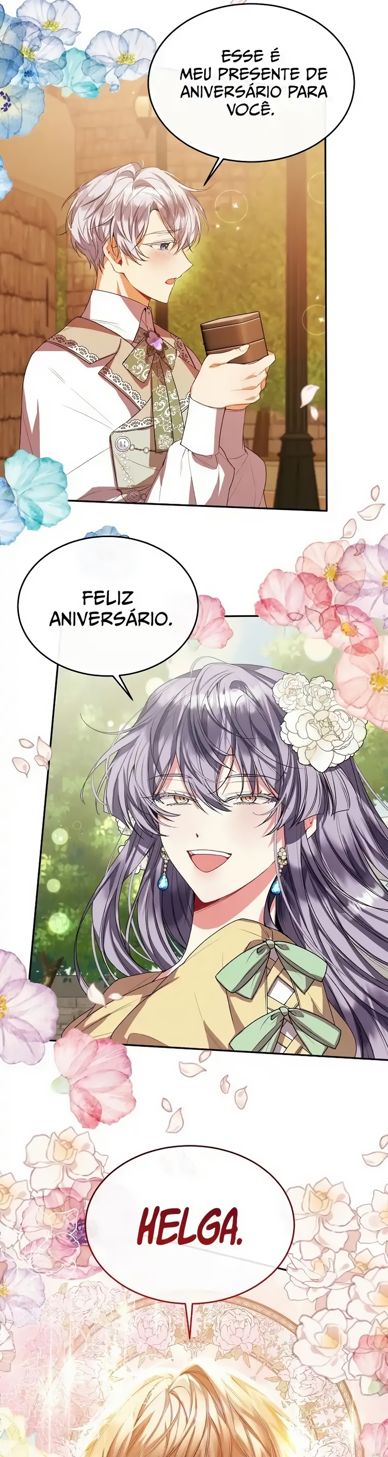 Helga Yttri, uma senhorita meio nobre que herdou o sangue de uma mera empregada. Uma filha bastarda que foi trocada pela empregada do Duque; uma filha falsa.Helga deu tudo de si para ser reconhecida como a filha verdadeira. “Vossa Graça! A verdadeira jovem senhorita está viva.”“O nome dela é Hyllian…!” Helga orou a Deus inúmeras vezes para que a verdadeira Jovem Senhorita nunca retornasse.“…não volte, Hyllian.”“Não volte, por favor.” Ela se perguntava se suas orações não chegavam a Deus por ela ser a filha falsa.“Querido Deus, tenho orado incontáveis vezes.”“Te pedi para nunca deixar ‘aquela criança’ voltar.” As orações que ela berrou até ficar rouca foram todas em vão.“A verdadeira filha da Casa Yttri, Hyllian… A filha que irá destruir todo o meu mundo.” A verdadeira filha voltou.