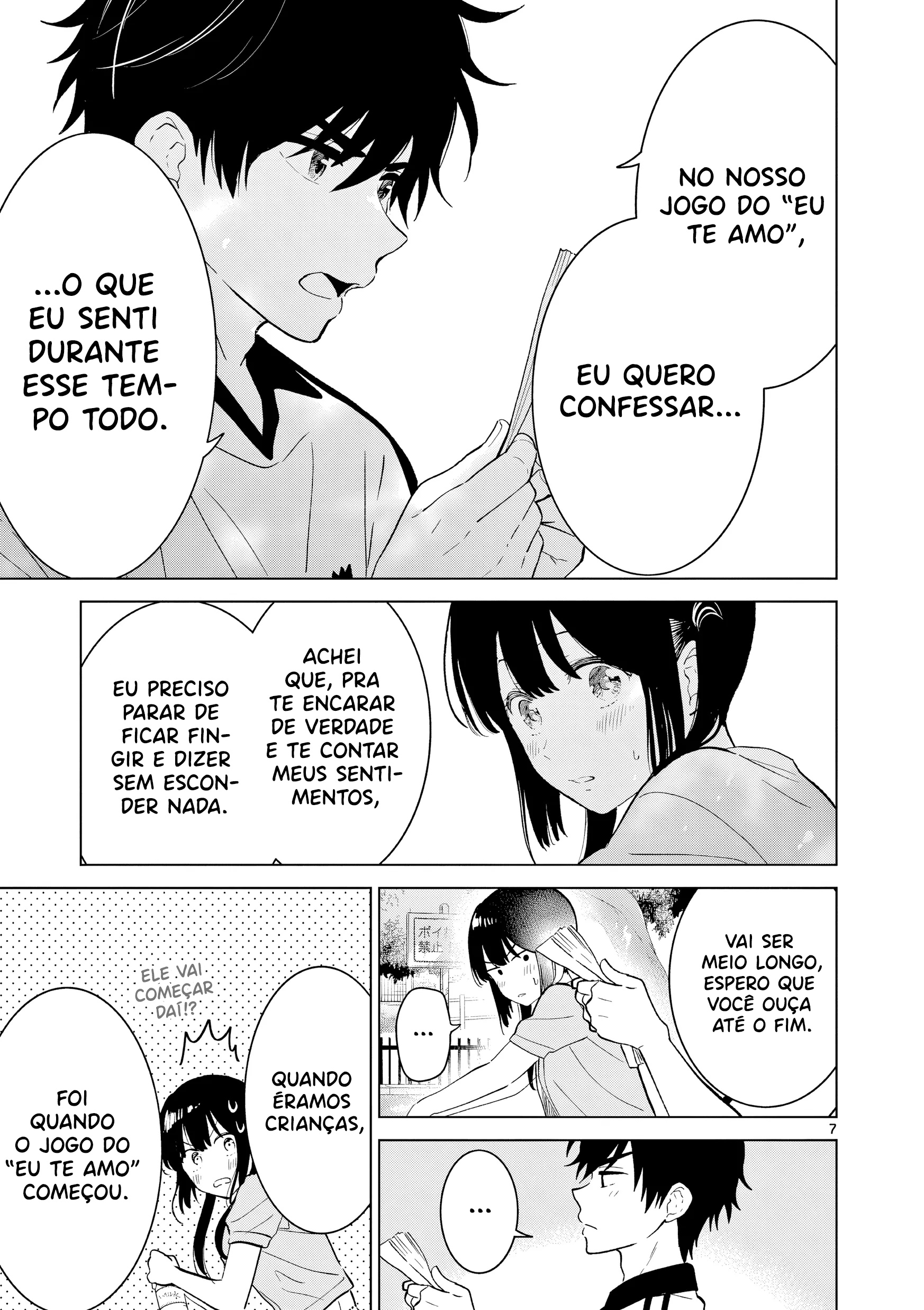 Childhood friends who've been together since they were little. They both realize their feelings for each other, but they're too close to be honest. What connects them is the I Love You Game that they've been playing since they were little. The conclusion of their love is entrusted to this silly game, where you win if you make the other person embarrassed!