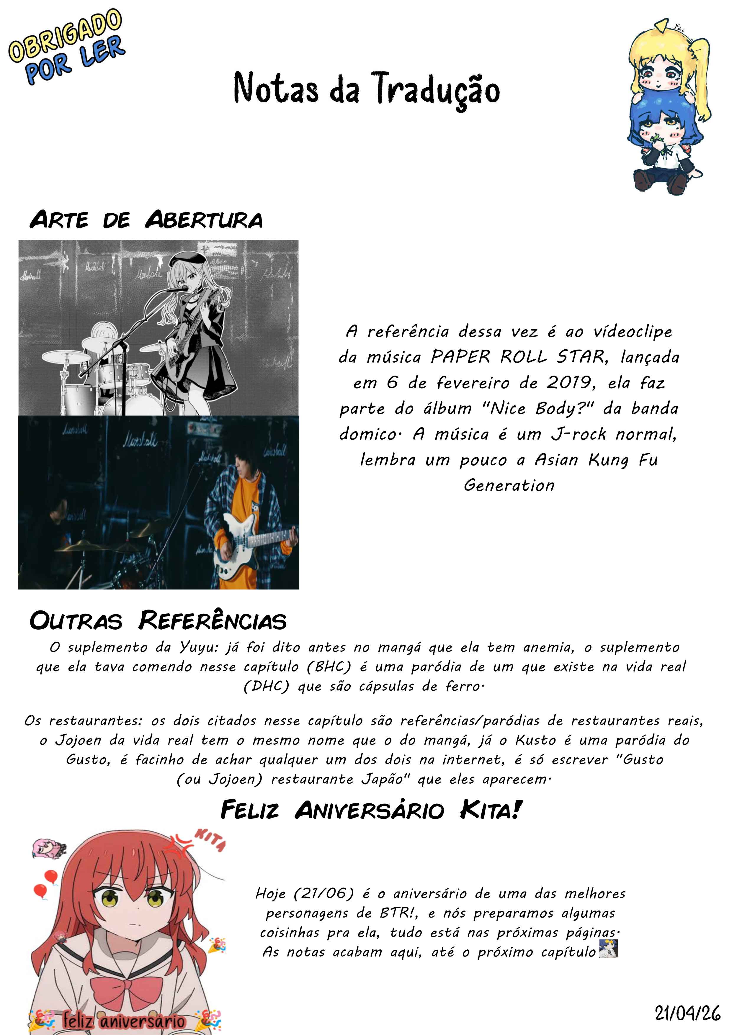 Postado - 3 horas atrás Boa leitura do mangá Bocchi the Rock! – Capítulo 50 , Não se esqueça de curtir e compartilhar. O Mangá Bocchi the Rock! é sempre atualizado no Pizzaria Scan. Não deixe de conferir também outras atualizações de mangá. A lista completa de mangás do Pizzaria Scan está no menu..