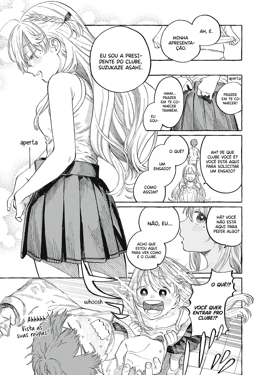 This story begins when the protagonist, a boy named Sora Akizuki, confesses his love to Miya Fuwa, a girl he has been in love with for a long time, and is rejected. When Sora learns that Miya likes someone else, Asahi Suzukaze, he visits the dubious “Trialing Club," of which Suzukaze is president, and tries to find out if she is the right person for her. The first episode shows the reality of the Trialing Club, whose activities one cannot imagine from its name, and the reason why its president created the club.