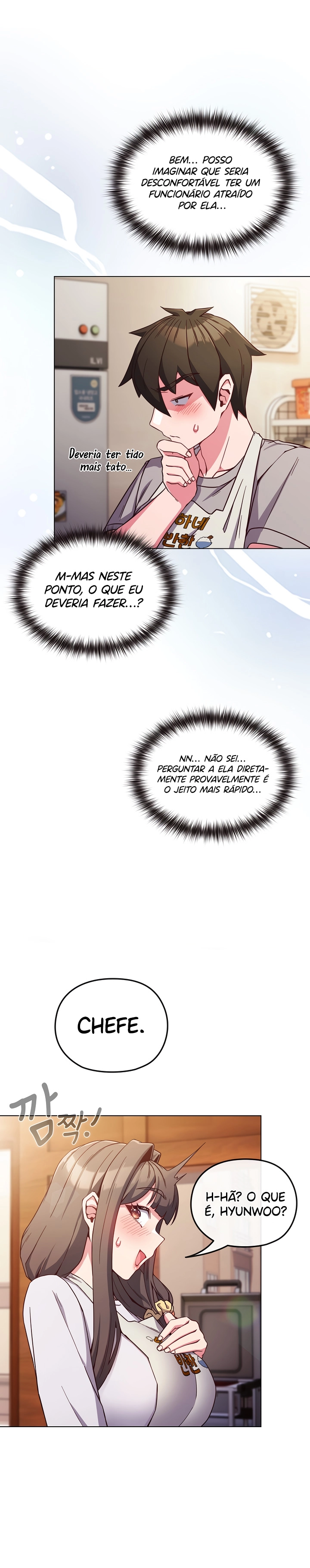 Sooyeon é uma mãe solteira dedicada que trabalha duro para manter sua pequena loja de acompanhamentos enquanto cria sua filha Seolha sozinha. Mesmo cansada e sobrecarregada, ela mantém um sorriso no rosto e tenta levar a vida da melhor forma possível. Seu dia a dia é simples, mas repleto de responsabilidades, e quase não há espaço para pensar em si mesma ou em seus próprios sentimentos. Tudo muda quando Hyunwoo entra em cena. Ele é um jovem de aparência intimidadora, com um jeito quieto e sério, mas extremamente responsável e prestativo no trabalho. Sooyeon o contrata como funcionário de meio período sem esperar muita coisa — até que começa a perceber detalhes que antes passavam despercebidos. Hyunwoo é gentil, respeitoso e sempre está atento às necessidades dela e da loja. Mesmo assim, por trás do olhar reservado, existe algo que Sooyeon não compreende totalmente. O choque acontece quando ela descobre, pouco a pouco, que Hyunwoo guarda sentimentos profundos por ela — sentimentos que ele tenta esconder devido à diferença de idade e ao fato de ela ser mãe de uma jovem da mesma idade que ele. A convivência diária aproxima os dois de forma inevitável: gestos pequenos, olhares trocados, conversas sinceras e uma crescente tensão emocional. A obra explora temas como solidão, desejo reprimido, culpa, amadurecimento e a busca por afeto em momentos inesperados. Sooyeon se vê dividida entre suas responsabilidades como mãe e o despertar de emoções que acreditava estar adormecidas. Já Hyunwoo luta contra seus impulsos e inseguranças, tentando encontrar um equilíbrio entre respeito e o amor crescente por essa mulher tão forte e vulnerável ao mesmo tempo.