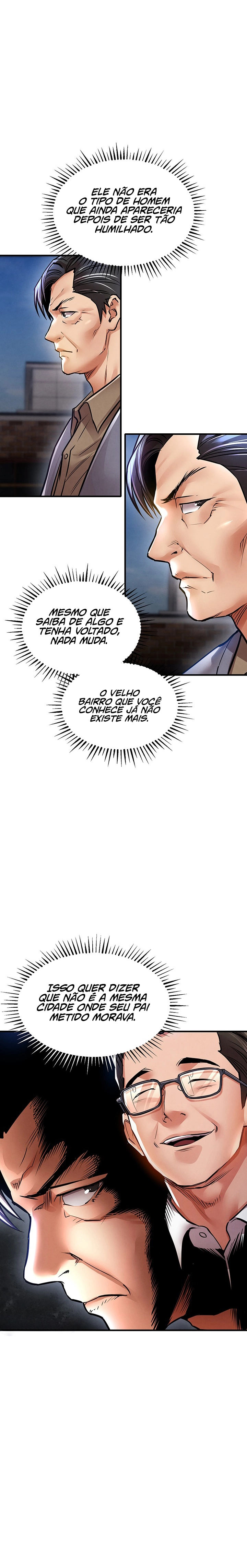 “Ouvi dizer que ele dorme com a esposa do vizinho sempre que o marido dela está numa viagem de negócios.” Era uma cidade nos arredores de Seul, mas tecnicamente não diferente do campo. Uma vez pensei que era uma comunidade quente e unida, mas na realidade era um lugar cheio de bestas. A bondade que eu tinha mostrado foi distorcida em malícia, e minha família foi expulsa de lá. Mas agora que recuperei o meu poder, regressarei gloriosamente aos lugares mais profundos daquela cidade.