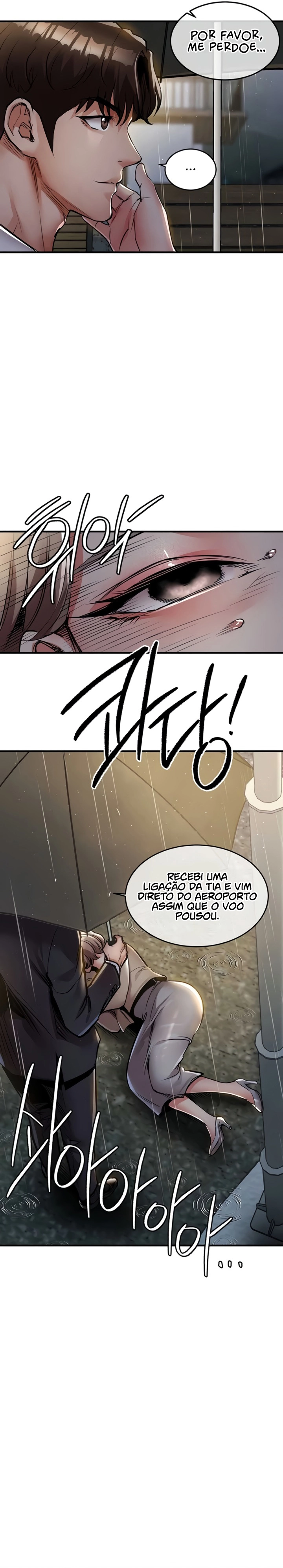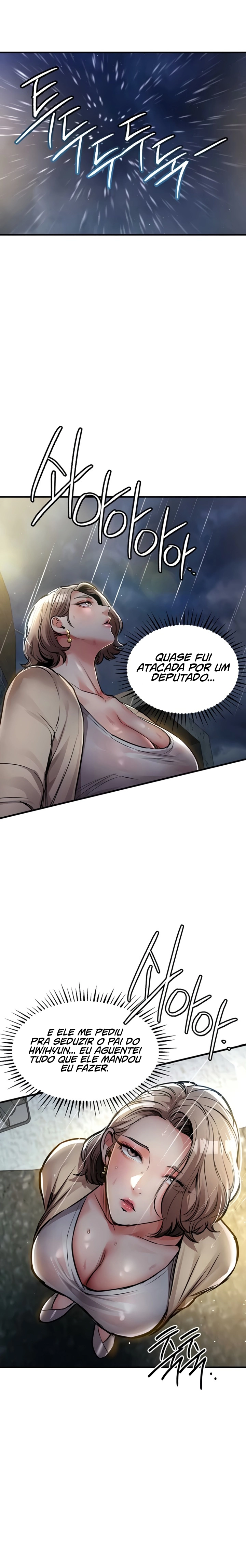 “Ouvi dizer que ele dorme com a esposa do vizinho sempre que o marido dela está numa viagem de negócios.” Era uma cidade nos arredores de Seul, mas tecnicamente não diferente do campo. Uma vez pensei que era uma comunidade quente e unida, mas na realidade era um lugar cheio de bestas. A bondade que eu tinha mostrado foi distorcida em malícia, e minha família foi expulsa de lá. Mas agora que recuperei o meu poder, regressarei gloriosamente aos lugares mais profundos daquela cidade.
