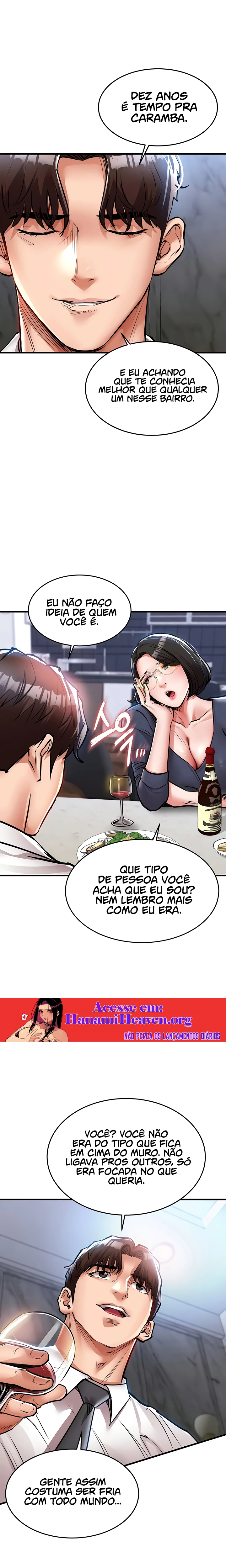 “Ouvi dizer que ele dorme com a esposa do vizinho sempre que o marido dela está numa viagem de negócios.” Era uma cidade nos arredores de Seul, mas tecnicamente não diferente do campo. Uma vez pensei que era uma comunidade quente e unida, mas na realidade era um lugar cheio de bestas. A bondade que eu tinha mostrado foi distorcida em malícia, e minha família foi expulsa de lá. Mas agora que recuperei o meu poder, regressarei gloriosamente aos lugares mais profundos daquela cidade.