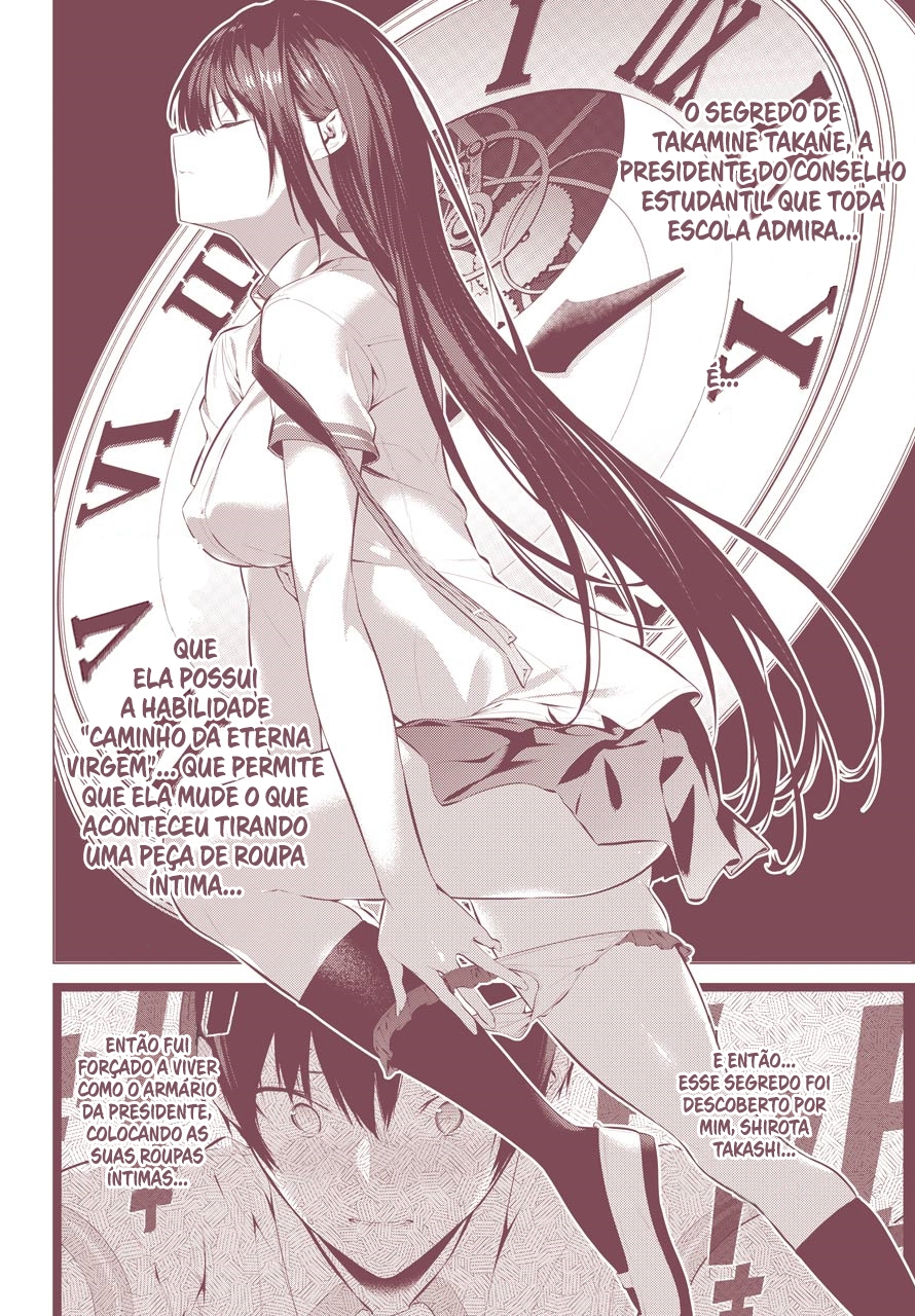Takamine Takane is the goddess of her high school. With perfect grades, athletic prowess, and unrivaled beauty, this student council president sits at the top of the social pyramid. And then there's Shirota Koushi, a below-average student with no friends or social prospects to speak of. One day, Shirota-kun accidentally sees Takamine-san's naked breasts and finds out the secret behind her unbelievable success. From then on, his school life changes. "Become my closet!" Shirota is forced into underwear-putting-on servitude!? ___ **Alt Official Raw:** [niconico Manga](https://manga.nicovideo.jp/comic/46371) **Official English Volumes:** [Yen Press](https://yenpress.com/series/please-put-them-on-takamine-san)
