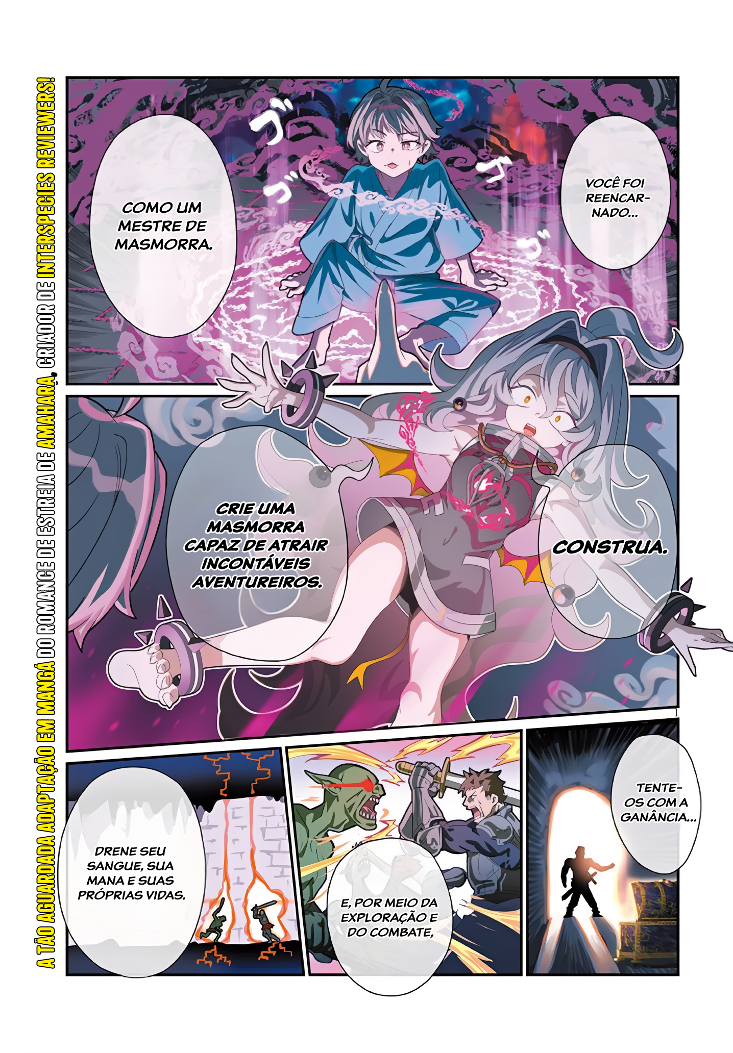 'You have been reincarnated as our Dungeon Master. Lure in as many adventurers as you can with their own greed. Through exploration and combat, create a dungeon that drains them of their blood, mana, and life itself.'