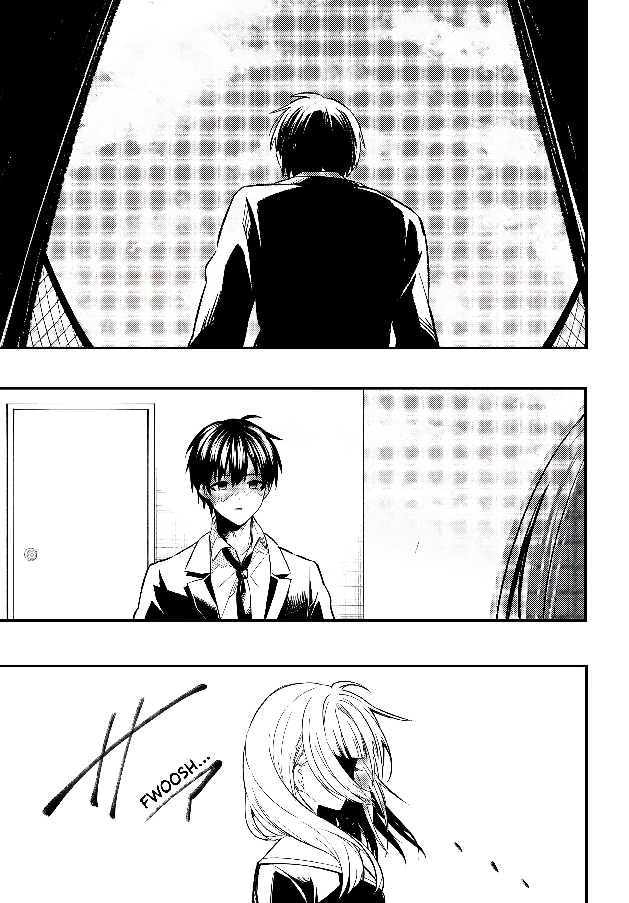 At the end of summer, Eiji Aono witnesses his childhood friend and girlfriend, Miyuki Amada, cheating on him with Kondo, the ace of the soccer team. Betrayed by her and emotionally shattered, Eiji becomes the target of baseless slander and harassment. Cornered and with nowhere to turn, he escapes to the school rooftop—where he meets a mysterious girl...