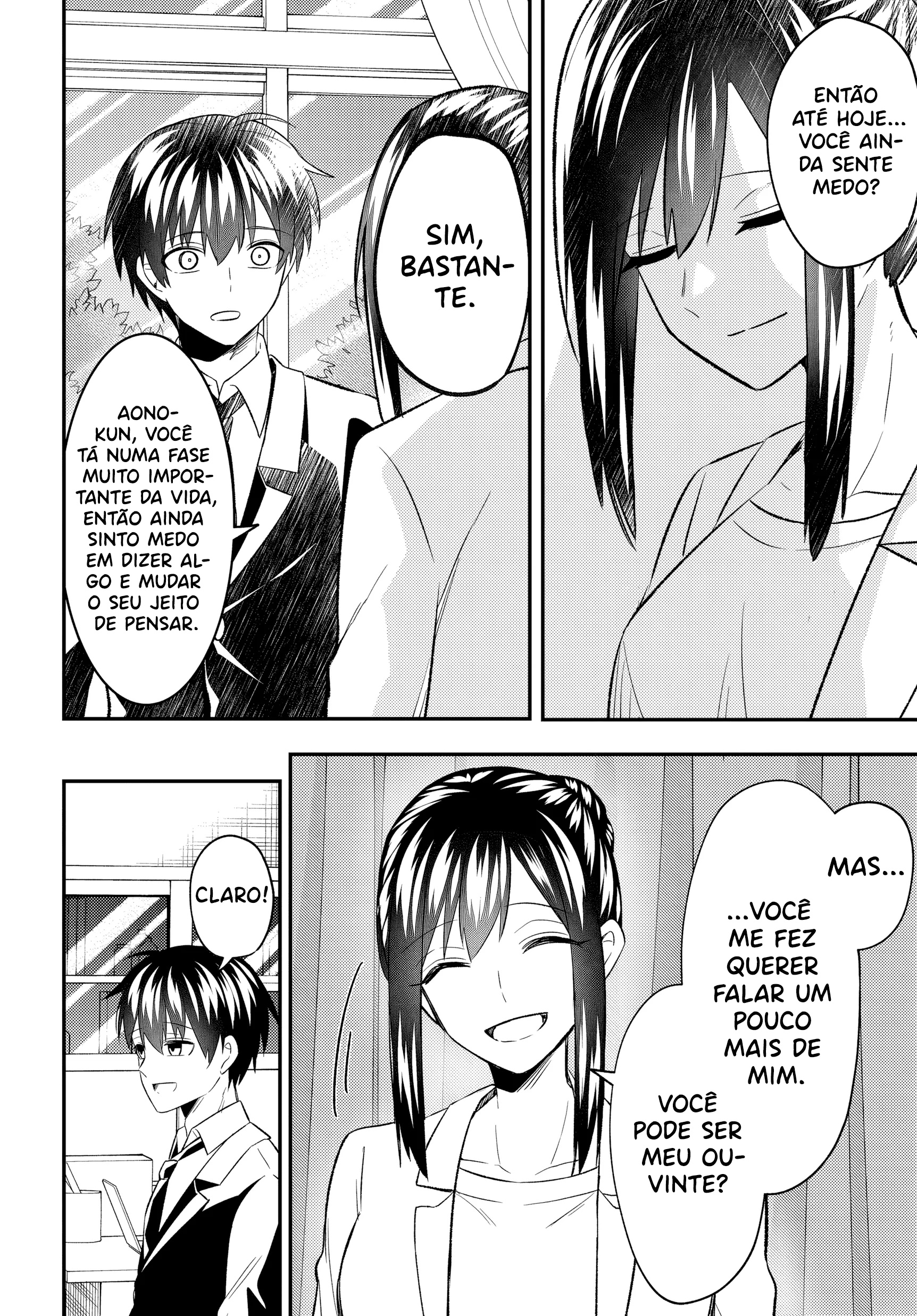 At the end of summer, Eiji Aono witnesses his childhood friend and girlfriend, Miyuki Amada, cheating on him with Kondo, the ace of the soccer team. Betrayed by her and emotionally shattered, Eiji becomes the target of baseless slander and harassment. Cornered and with nowhere to turn, he escapes to the school rooftop—where he meets a mysterious girl...