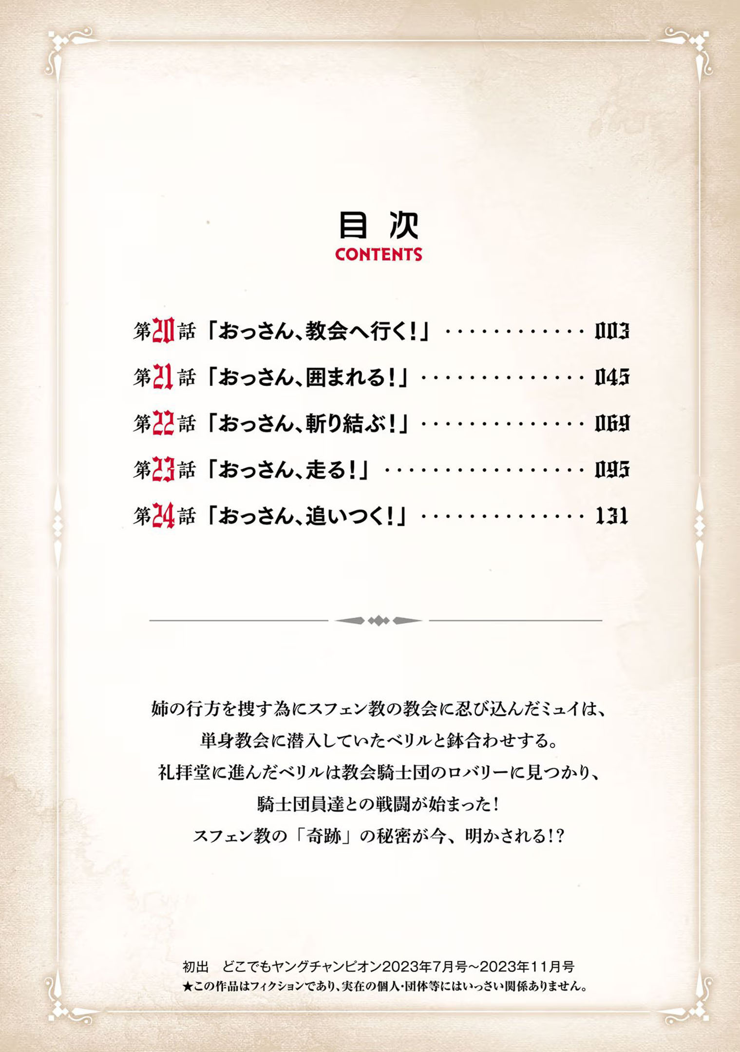 Middle-aged Beryl Gardinant has only ever accomplished one thing: running a humble sword-fighting dojo in the quiet countryside. But when he's paid a visit by his former pupil, Allusia, he discovers that she has become an elite commander — and she's hardly the only ex-student who’s a renowned warrior! Now forced by Allusia to become a special instructor to the strongest order of knights in the kingdom, can Beryl reach his full potential even though he's an old man?
