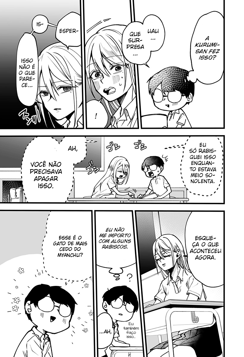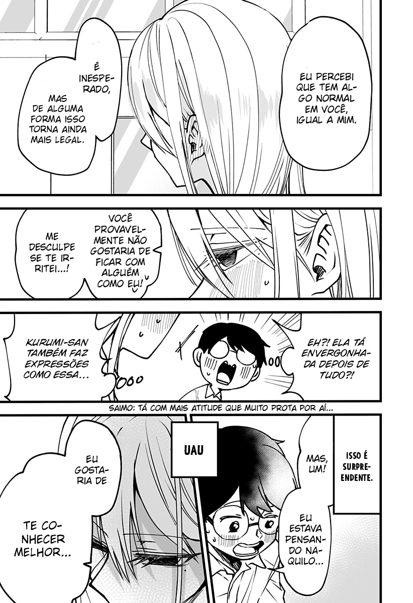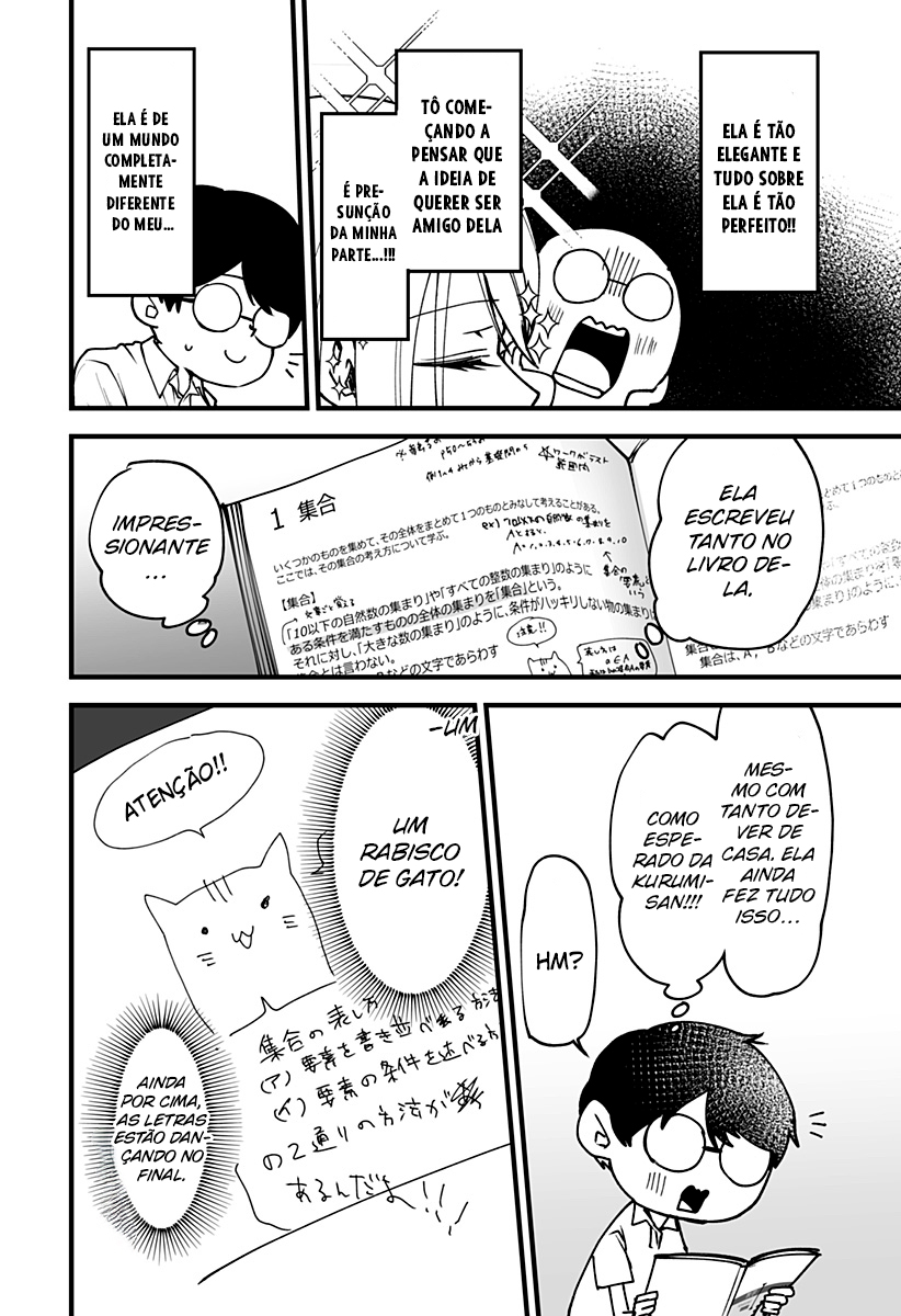 A plain, quiet guy named Fujimori admires a girl who's too beautiful — Kurumi. Because of his shy personality, he freezes up and can't speak when he gets attention, so he's never once talked to her and they shouldn't have any connection… or so he thought? A wild, emotionally intense beauty and a gloomy, oblivious boy — their clumsy, mismatched love comedy begins!
