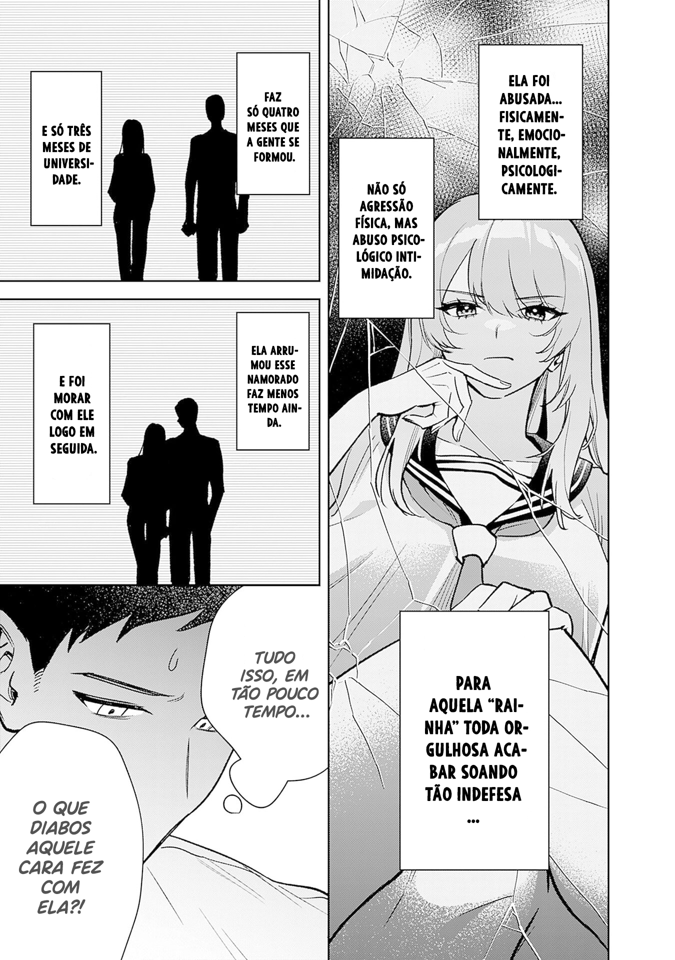 One late night, Yamamoto, a college student working part-time at a convenience store, reunites with Hayashi Megumi, his high school classmate and the most beautiful girl in their class. Known as the "Queen" for her strong-willed and arrogant personality, Yamamoto had always found her difficult to get along with. However, during a routine conversation, he notices painful bruises on her wrist. After learning that her boyfriend had been abusing her, Yamamoto decides to let Hayashi stay at his place...!?