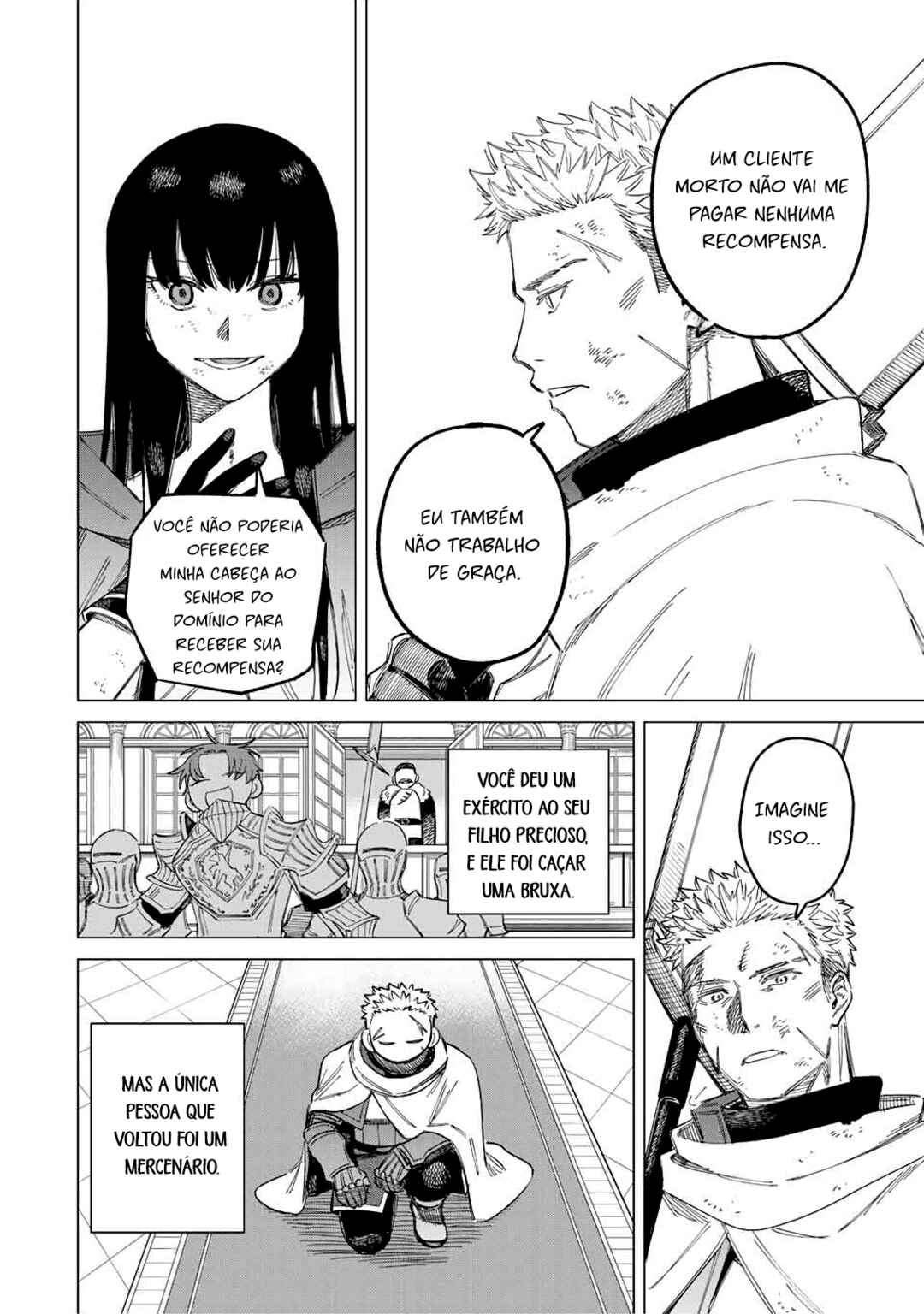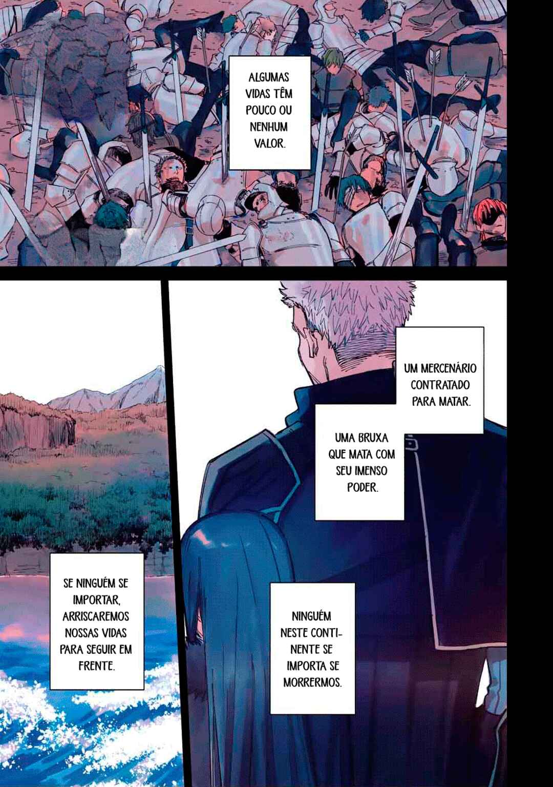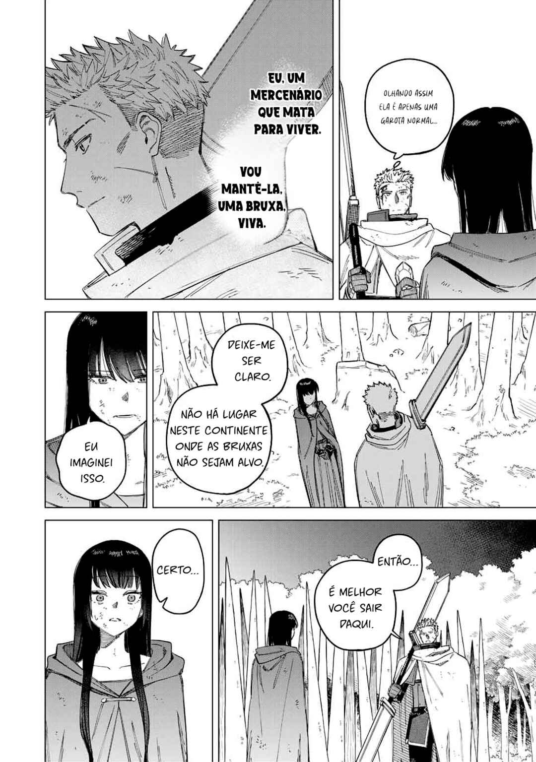 Zig—a tall, broad-shouldered mercenary—participates in a witch hunt. Following a fierce duel with the deadly witch, he becomes privy to her desire. “I want you to protect me,” she requests, tired of having her life trivialized. Seeking a place to survive, the witch and the mercenary set their sights on an unknown continent! ___ [Official X Account](https://x.com/witch_mercenary)