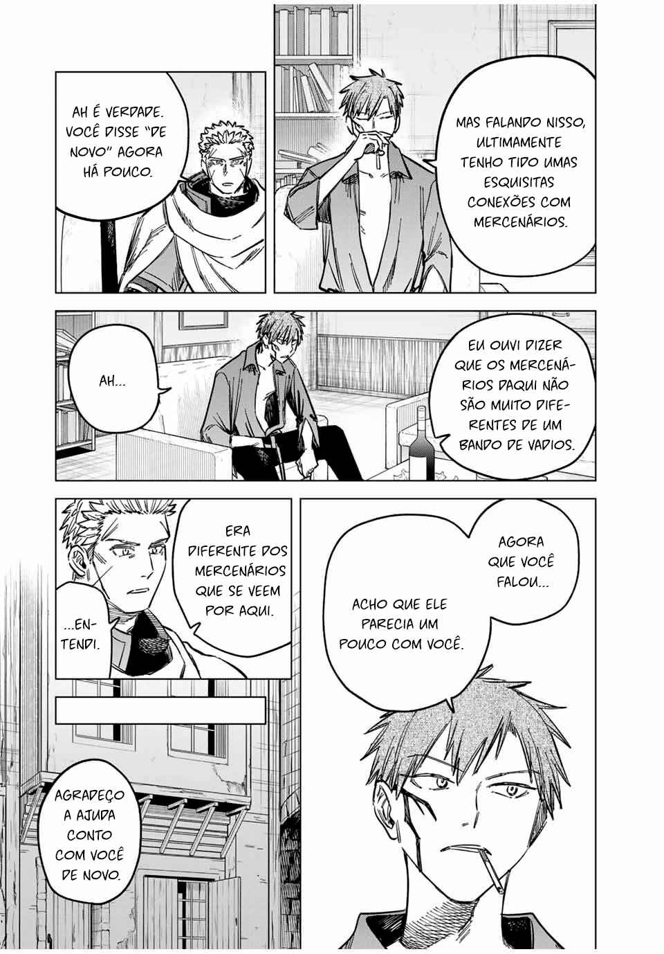 Zig—a tall, broad-shouldered mercenary—participates in a witch hunt. Following a fierce duel with the deadly witch, he becomes privy to her desire. “I want you to protect me,” she requests, tired of having her life trivialized. Seeking a place to survive, the witch and the mercenary set their sights on an unknown continent! ___ [Official X Account](https://x.com/witch_mercenary)