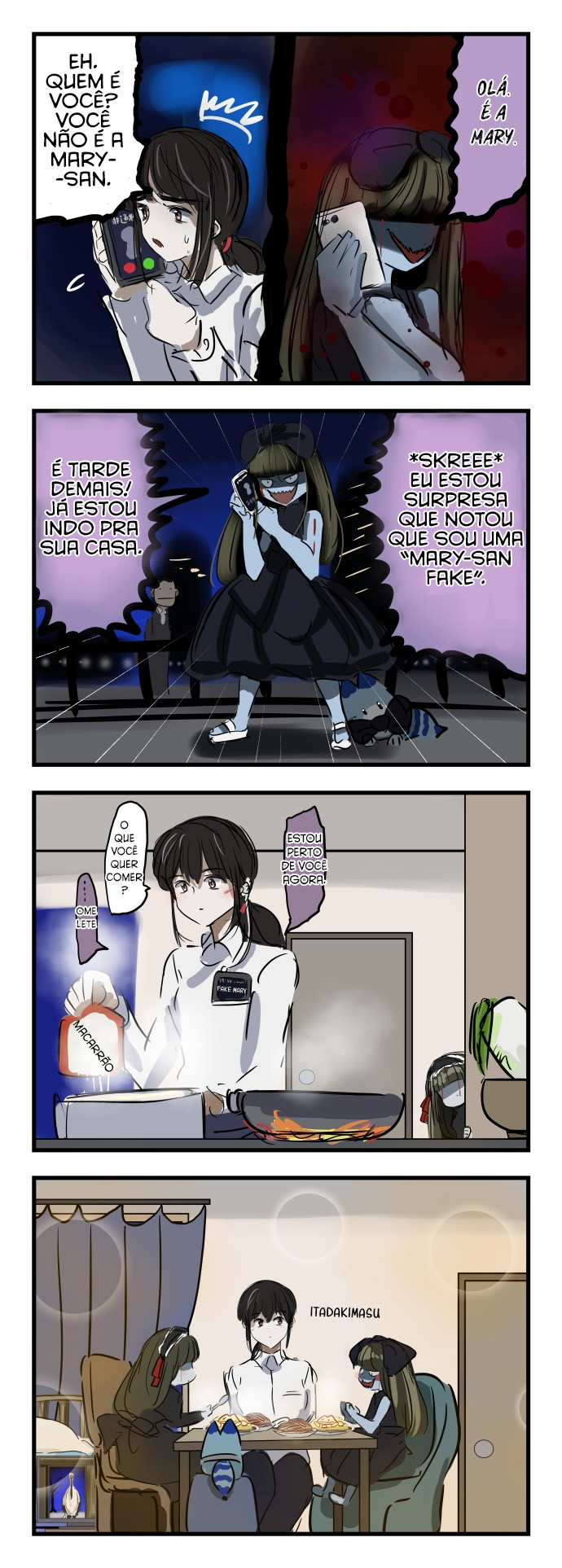This is based on the Japanese urban legend Mary-san. If it makes no sense at all to you, see https://www.kowabana.net/2018/06/09/mary-san/ and it will be a lot more comprehensible, while still being cute.