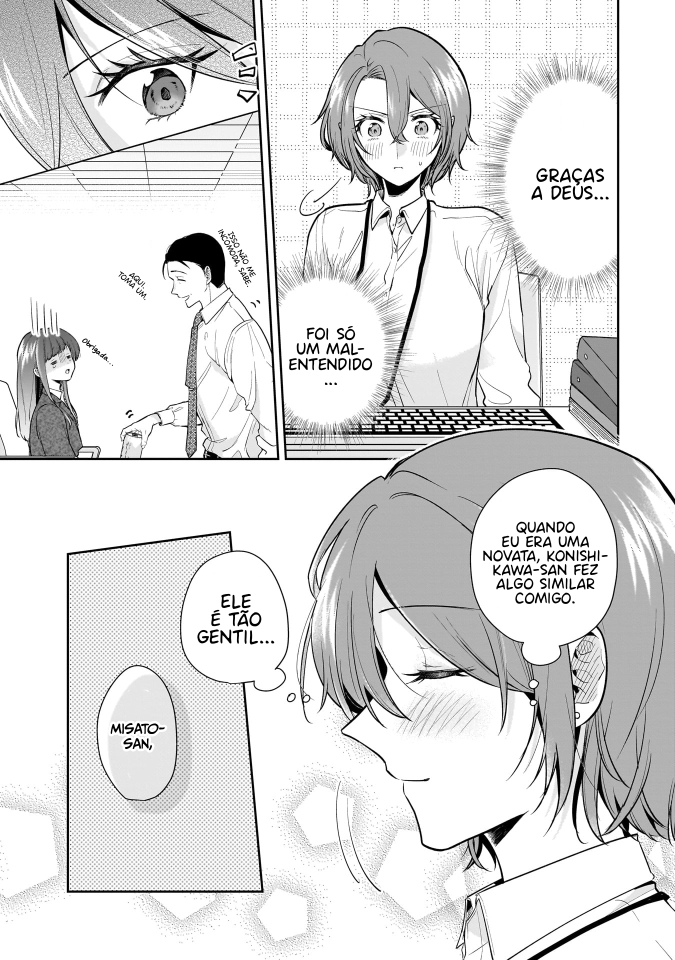 Misato-san, a very beautiful office lady who is good at her job, and her boss—Konishikawa-san, a middle-aged man who spoils his subordinates. Misato-san has a strict attitude toward Konishikawa-san, but what are the hidden feelings behind it?! The gap between the seriousness and cuteness will make you faint in anxiety, and this office love comedy with a difference in age begins! (MTL)