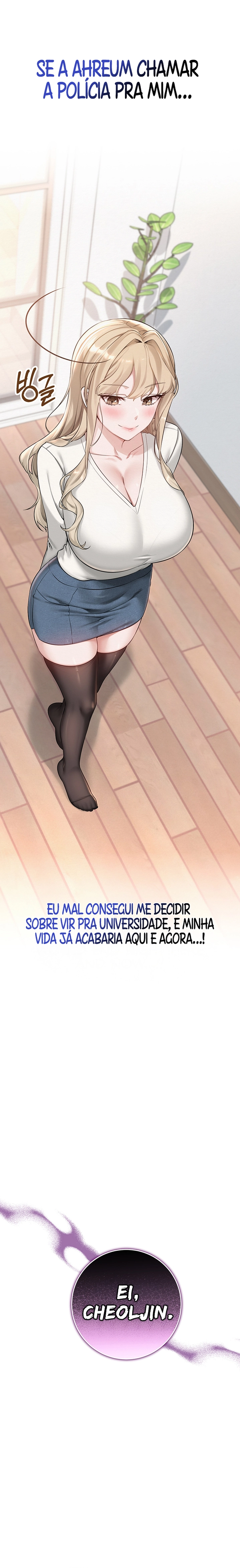 Nervoso, fui à festa dos calouros e, por acaso, peguei um controle misterioso enquanto estava lá… Clique! Quando apertei o botão, “Por que tô escutando uma vibração estranha vindo do corpo da Ahreum?!” A vida universitária emocionante do recluso Cheoljin com suas amigas safadas começa!