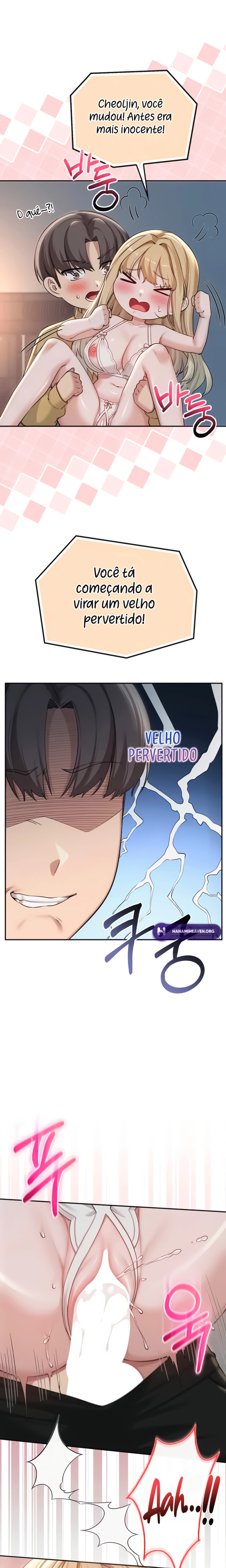Nervoso, fui à festa dos calouros e, por acaso, peguei um controle misterioso enquanto estava lá… Clique! Quando apertei o botão, “Por que tô escutando uma vibração estranha vindo do corpo da Ahreum?!” A vida universitária emocionante do recluso Cheoljin com suas amigas safadas começa!
