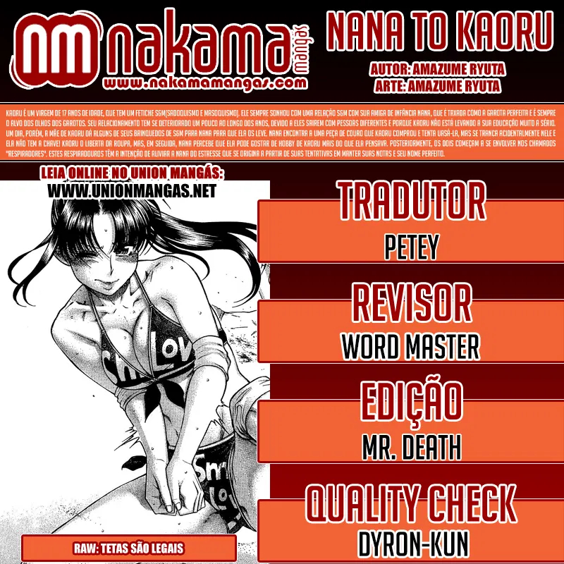 Kaoru is a 17-year-old virgin who has an SM fetish. He secretly dreams about an SM relationship with his childhood friend Nana. One day Kaoru's mom asks Nana to hide all his SM toys so he'll study for a change. However, Nana finds the leather one-piece that Kaoru bought and tries it on, but she accidentally locks it and doesn't have the key! The beginning of their super strange relationship. --- **Links:** - [Alternative Official Raw - Young Animal](https://younganimal.com/series/b10a2a258e602/) - [Alternative Official English - FAKKU](https://www.fakku.net/hentai/nana-kaoru-volume-1-english)