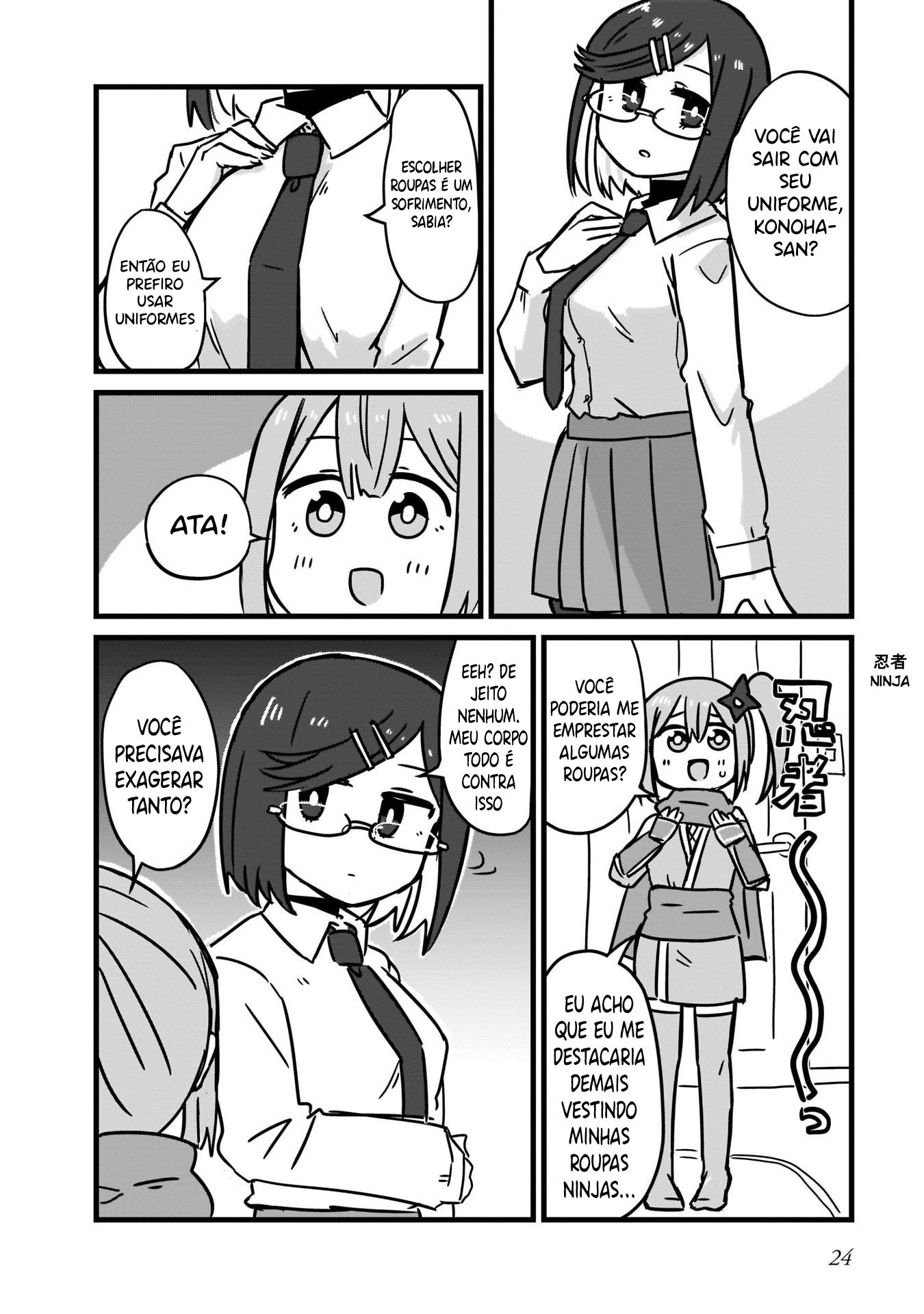 Roped into fleeing from her ninja village, Satoko, a ninja with the ability to turn non-living things into leaves, ends up encountering a high school girl named Konoha, who just so happens to be a professional assassin. With Satoko needing protection from the ninjas pursuing her for her desertion and Konoha needing someone to help dispose of evidence, the two begin living together.