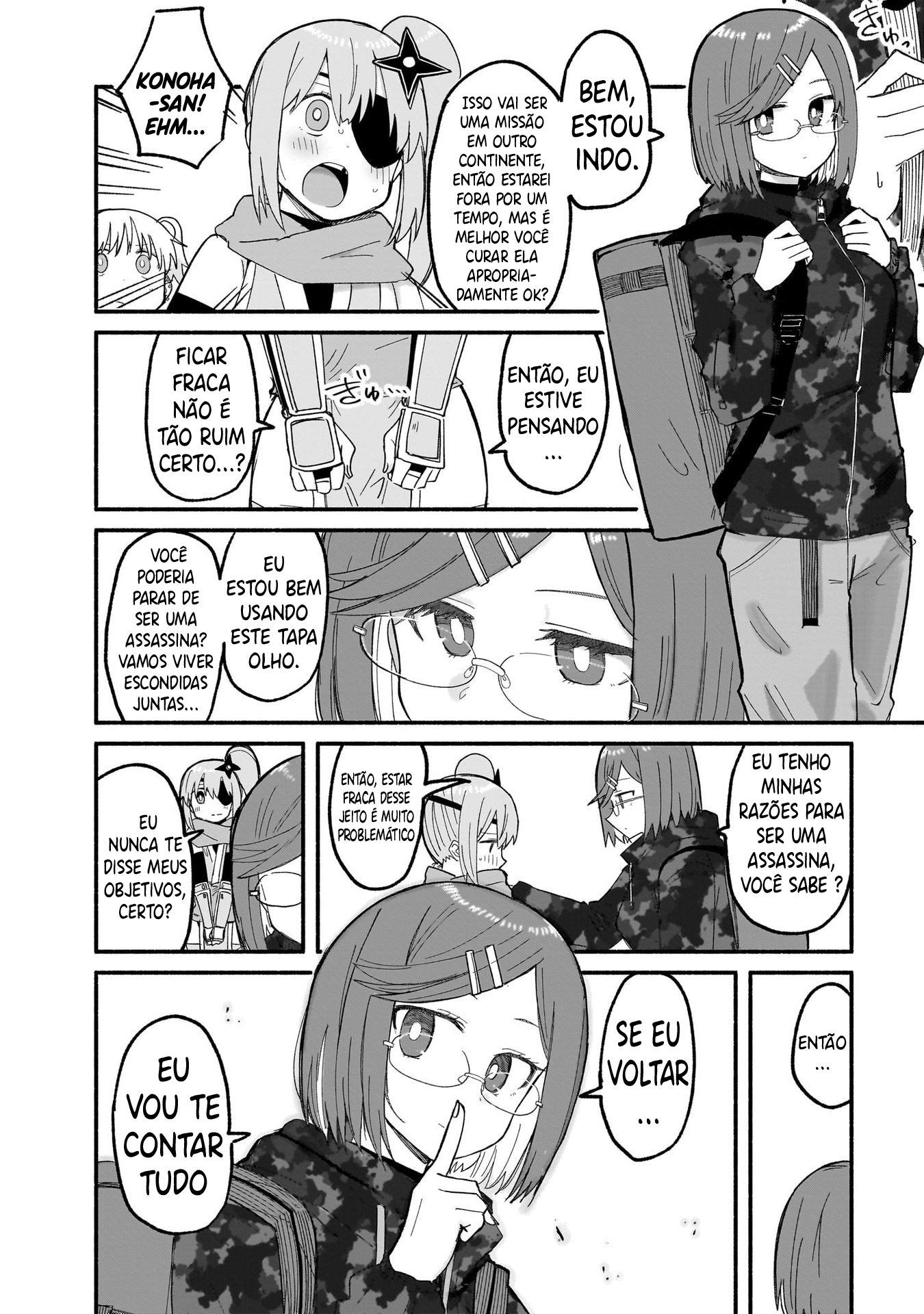Roped into fleeing from her ninja village, Satoko, a ninja with the ability to turn non-living things into leaves, ends up encountering a high school girl named Konoha, who just so happens to be a professional assassin. With Satoko needing protection from the ninjas pursuing her for her desertion and Konoha needing someone to help dispose of evidence, the two begin living together.