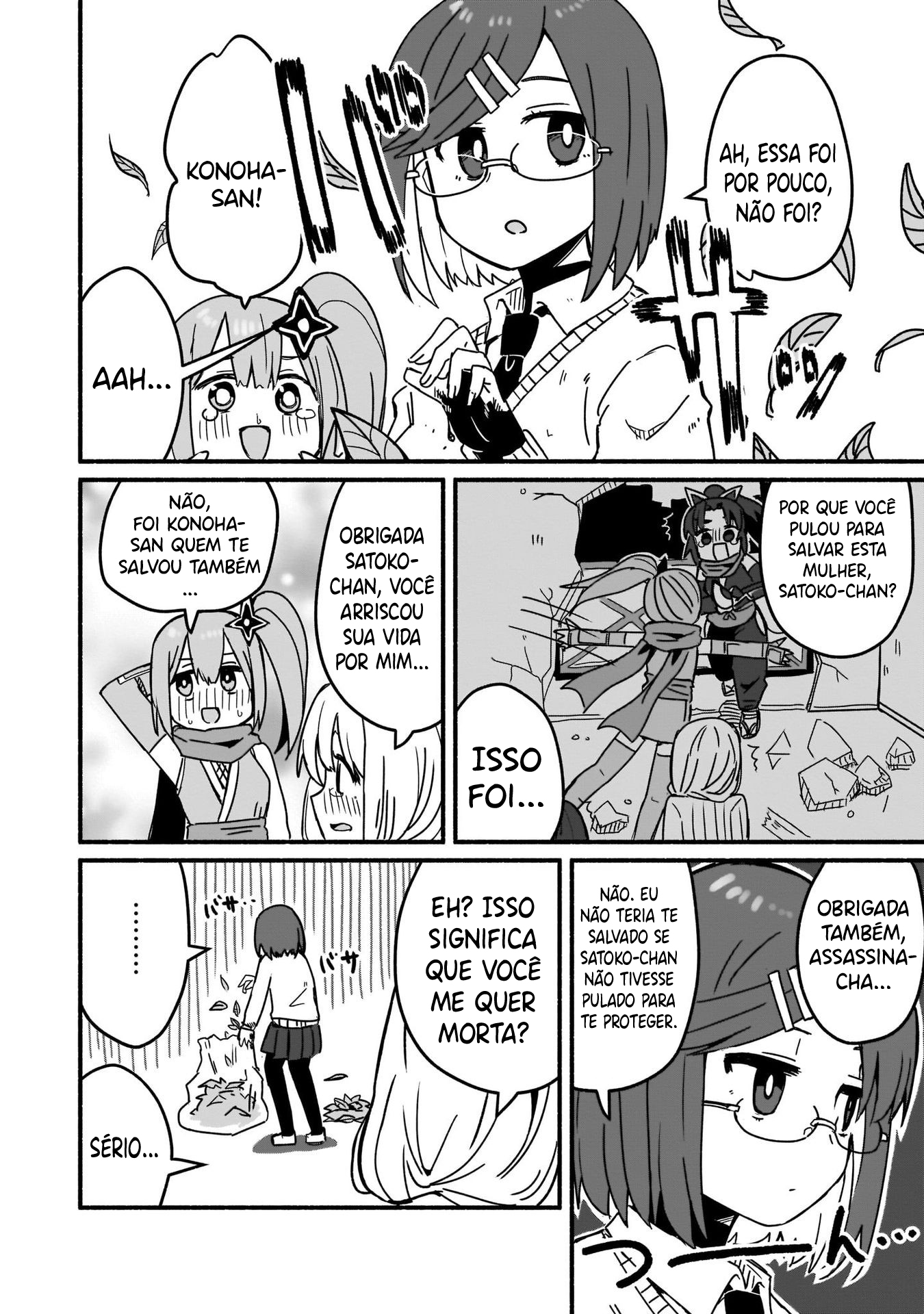 Roped into fleeing from her ninja village, Satoko, a ninja with the ability to turn non-living things into leaves, ends up encountering a high school girl named Konoha, who just so happens to be a professional assassin. With Satoko needing protection from the ninjas pursuing her for her desertion and Konoha needing someone to help dispose of evidence, the two begin living together.