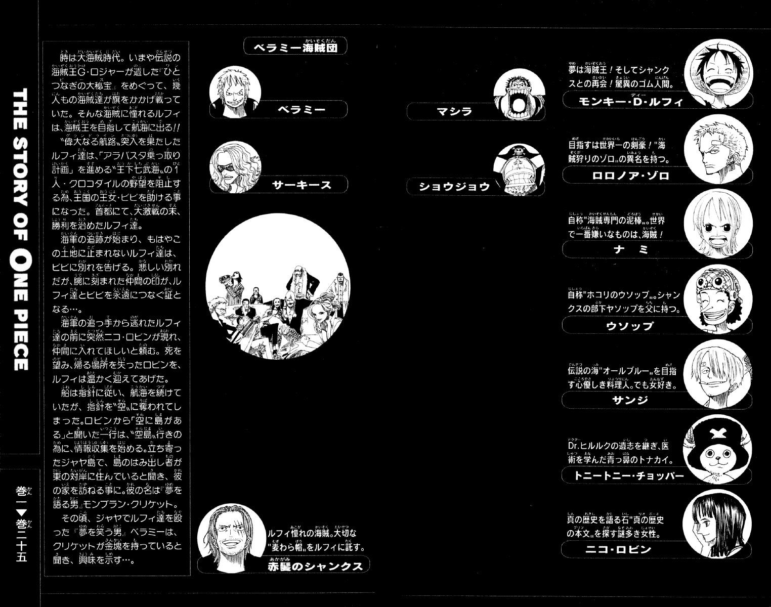 Gol D. Roger, a man referred to as the King of the Pirates, is set to be executed by the World Government. But just before his demise, he confirms the existence of a great treasure, One Piece, located somewhere within the vast ocean known as the Grand Line. Announcing that One Piece can be claimed by anyone worthy enough to reach it, the King of the Pirates is executed and the Great Age of Pirates begins. Twenty-two years later, a young man by the name of Monkey D. Luffy is ready to embark on his own adventure, searching for One Piece and striving to become the new King of the Pirates. Armed with just a straw hat, a small boat, and an elastic body, he sets out on a fantastic journey to gather his own crew and a worthy ship that will take them across the Grand Line to claim the greatest status on the high seas. [Written by MAL Rewrite]