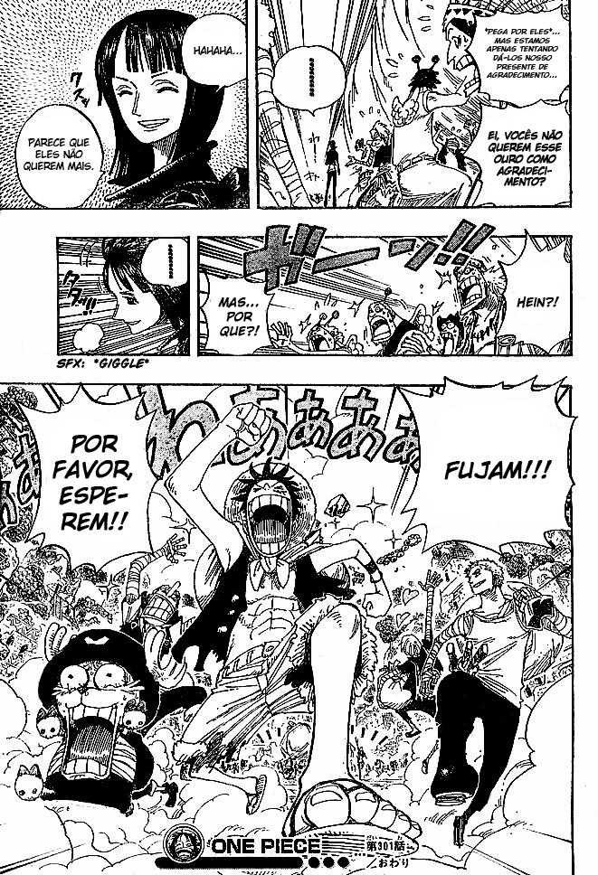 Boa leitura do mangá One Piece – Capítulo 301 , Não se esqueça de curtir e compartilhar. O Mangá One Piece é sempre atualizado no Pizzaria Scan. Não deixe de conferir também outras atualizações de mangá. A lista completa de mangás do Pizzaria Scan está no menu..