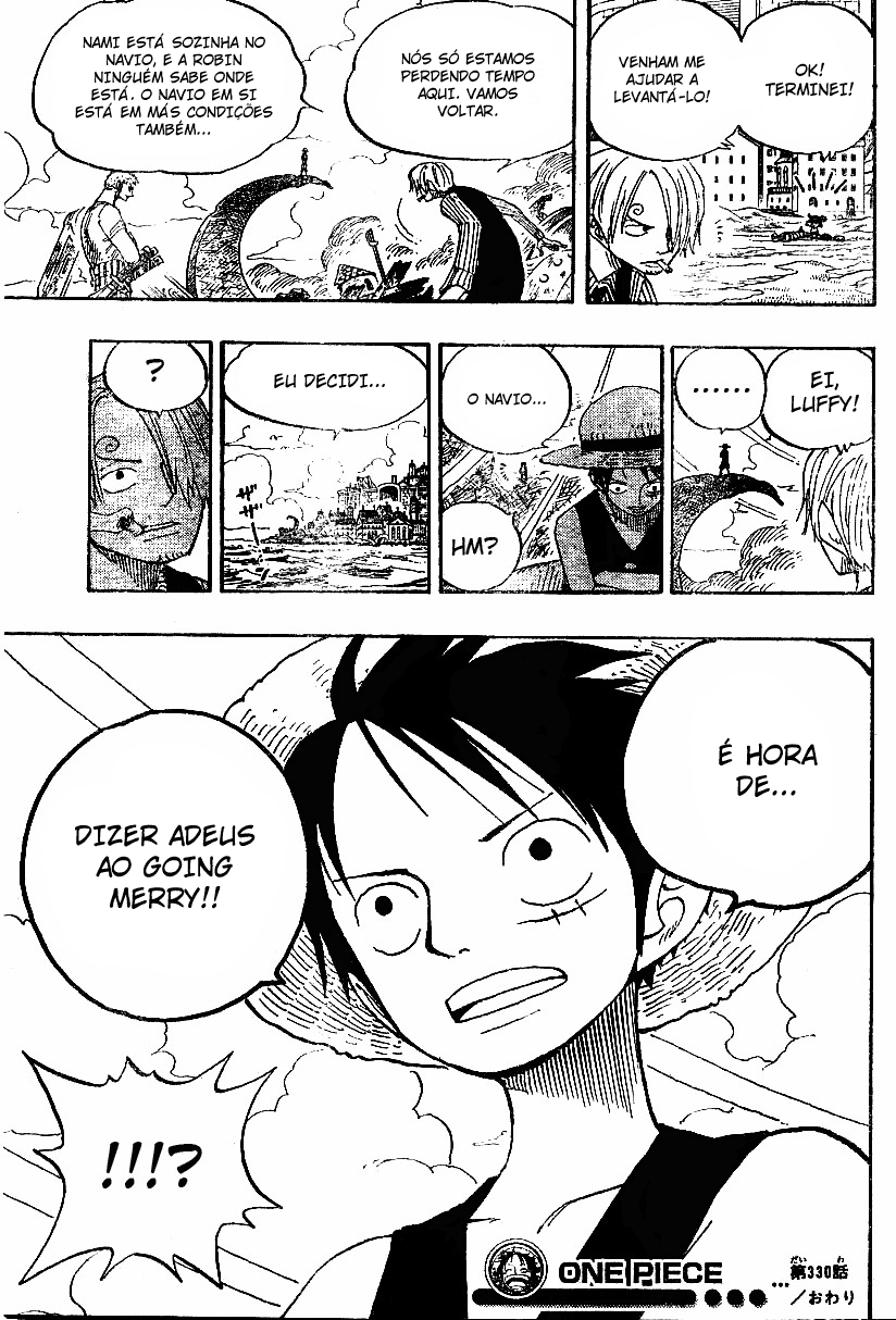 Boa leitura do mangá One Piece – Capítulo 330 , Não se esqueça de curtir e compartilhar. O Mangá One Piece é sempre atualizado no Pizzaria Scan. Não deixe de conferir também outras atualizações de mangá. A lista completa de mangás do Pizzaria Scan está no menu..