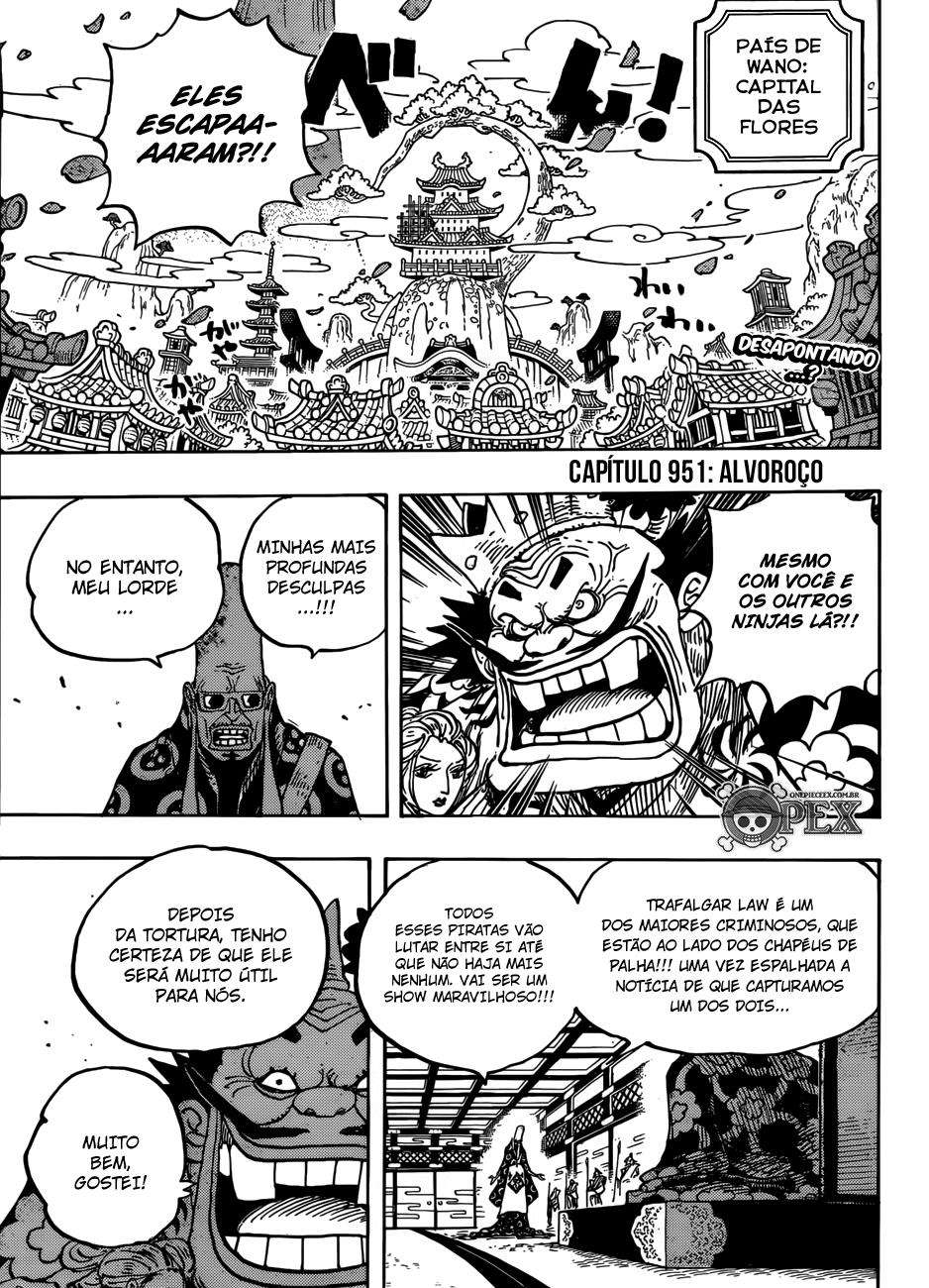 Boa leitura do mangá One Piece – Capítulo 951 , Não se esqueça de curtir e compartilhar. O Mangá One Piece é sempre atualizado no Pizzaria Scan. Não deixe de conferir também outras atualizações de mangá. A lista completa de mangás do Pizzaria Scan está no menu..