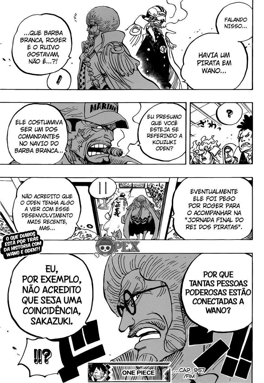 Boa leitura do mangá One Piece – Capítulo 957 , Não se esqueça de curtir e compartilhar. O Mangá One Piece é sempre atualizado no Pizzaria Scan. Não deixe de conferir também outras atualizações de mangá. A lista completa de mangás do Pizzaria Scan está no menu..