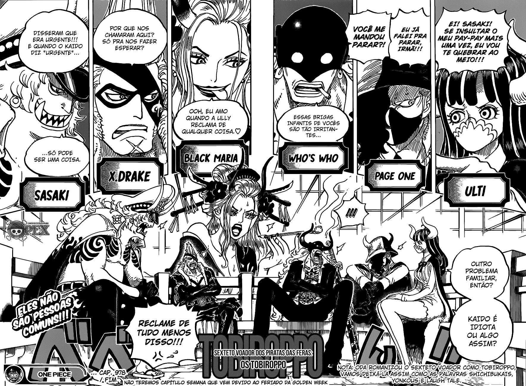 Boa leitura do mangá One Piece – Capítulo 978 , Não se esqueça de curtir e compartilhar. O Mangá One Piece é sempre atualizado no Pizzaria Scan. Não deixe de conferir também outras atualizações de mangá. A lista completa de mangás do Pizzaria Scan está no menu..