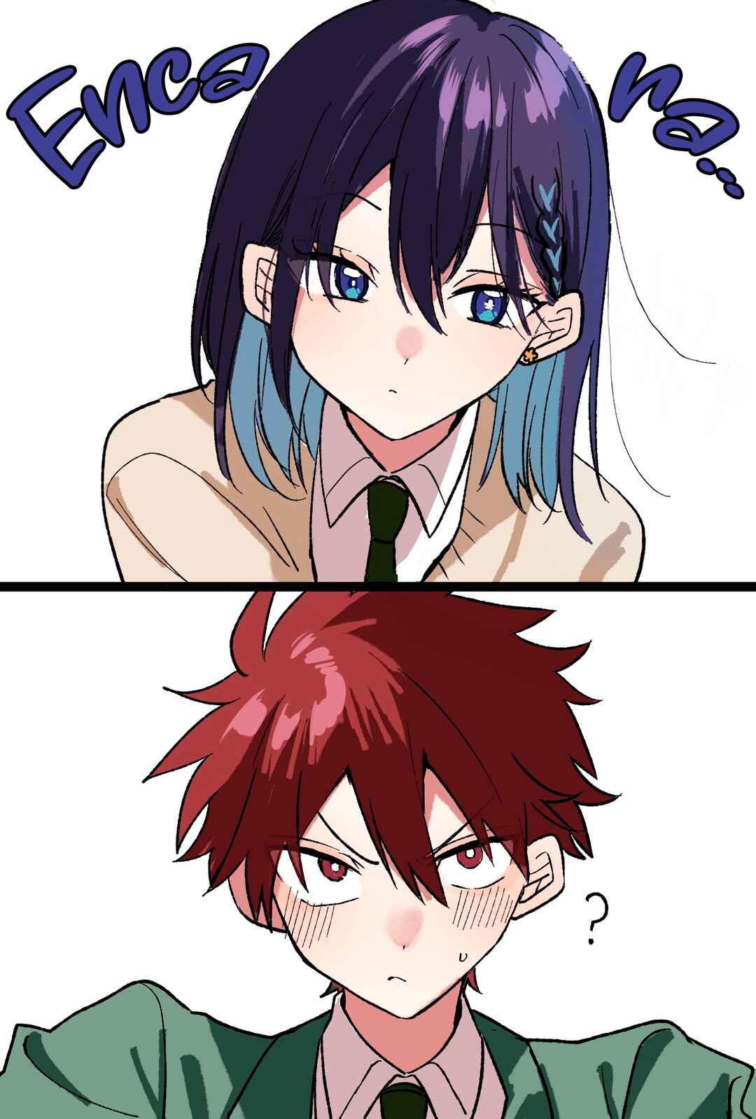 Mas então, uma garota bonita da turma dele de repente começa a falar demais com ele. Será que ela está só tentando atingir o irmão dele também…? Ou será que ela quer dizer outra coisa?