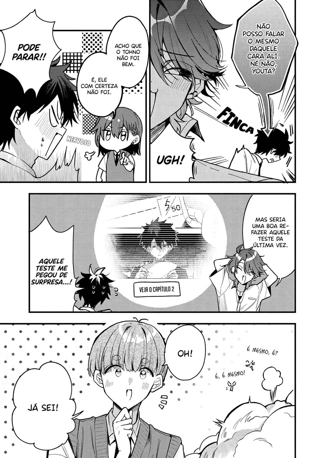 Mas então, uma garota bonita da turma dele de repente começa a falar demais com ele. Será que ela está só tentando atingir o irmão dele também…? Ou será que ela quer dizer outra coisa?