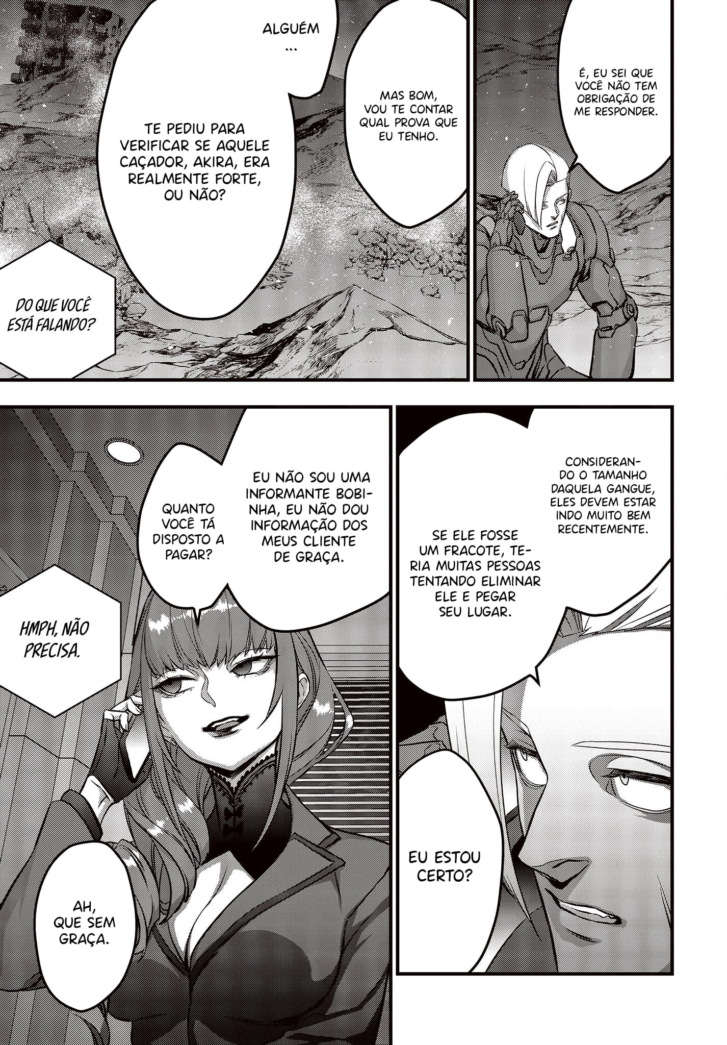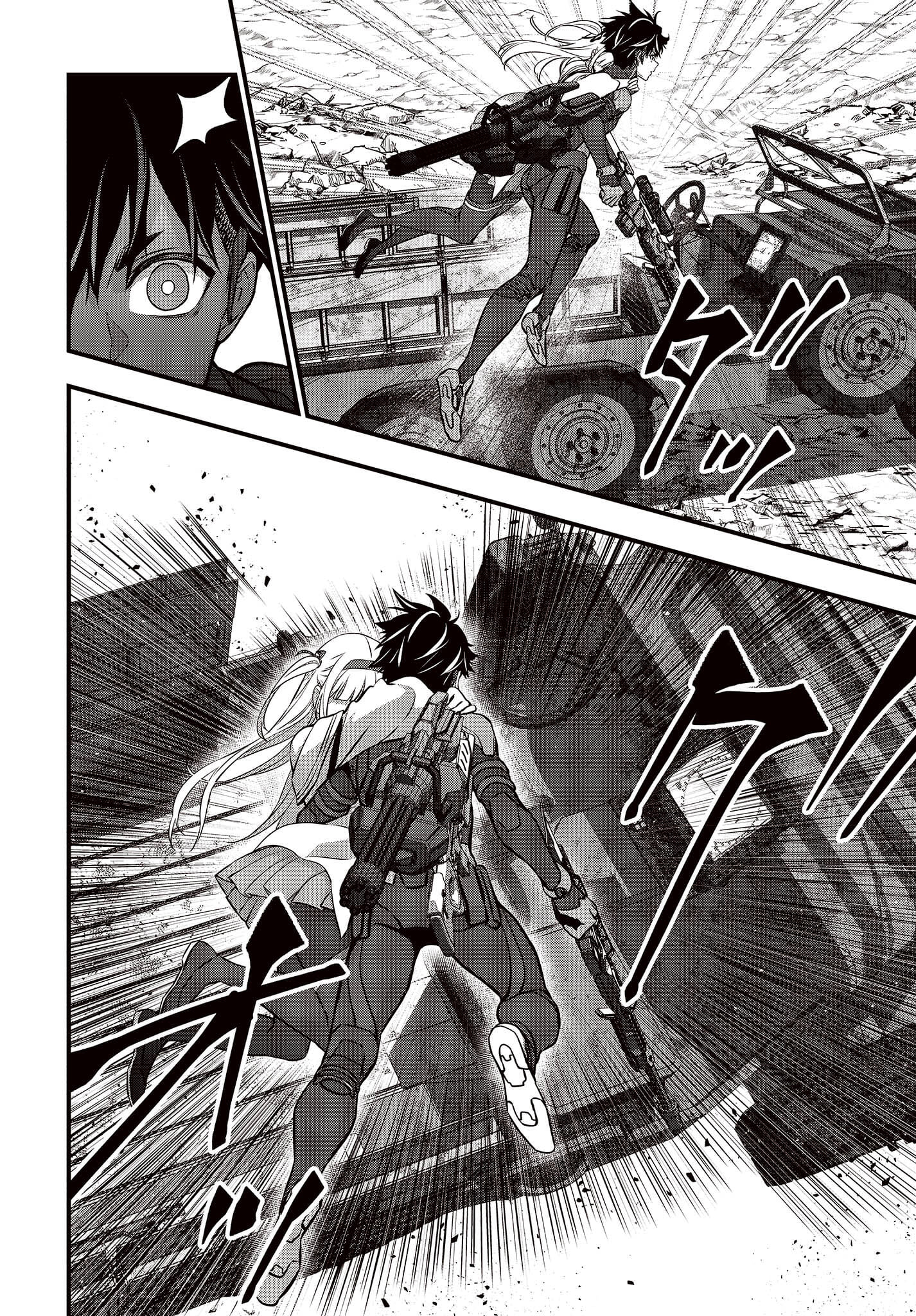 Alpha won’t show even a sliver of her real intentions, but with a wide smile, she brings Akira his first commission as a hunter. Akira takes the task, if only to become a stronger hunter, and having entered a contract, their dramatic lives in the hunting profession was set to begin.