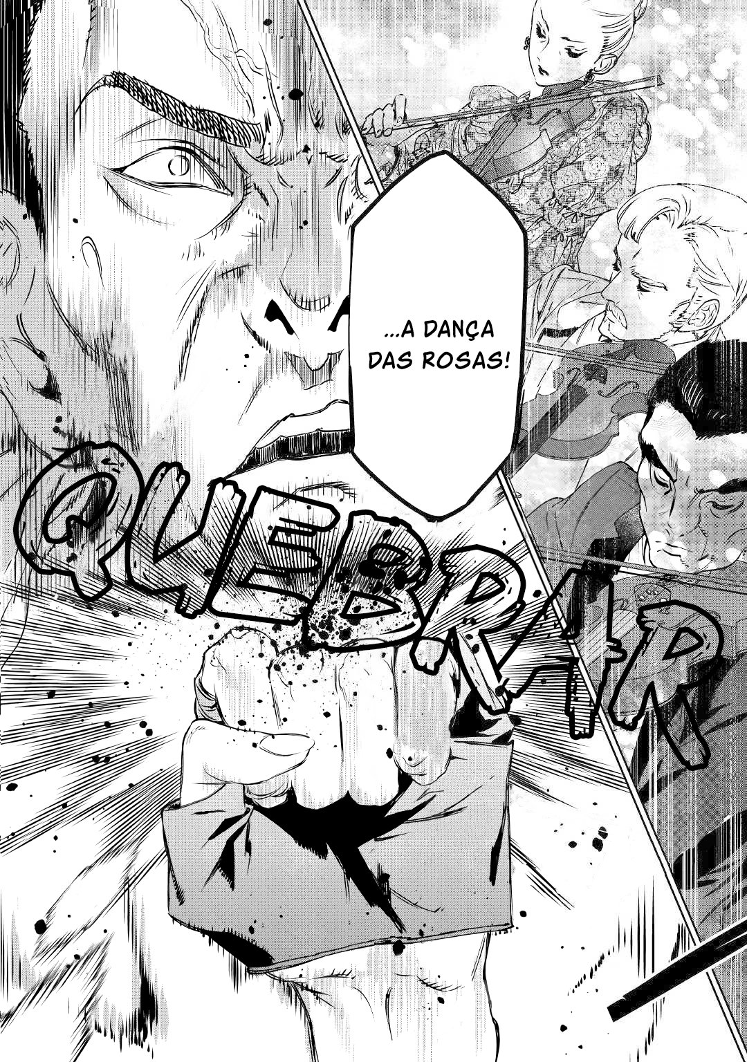 Enquanto a multidão vaiava e gritava insultos, e aquele rapaz bonito disparava suas ofensas, a palma da mão dela girou como uma furadeira e o chão do salão de baile ficou manchado de sangue. De seus punhos, o acerto de contas!