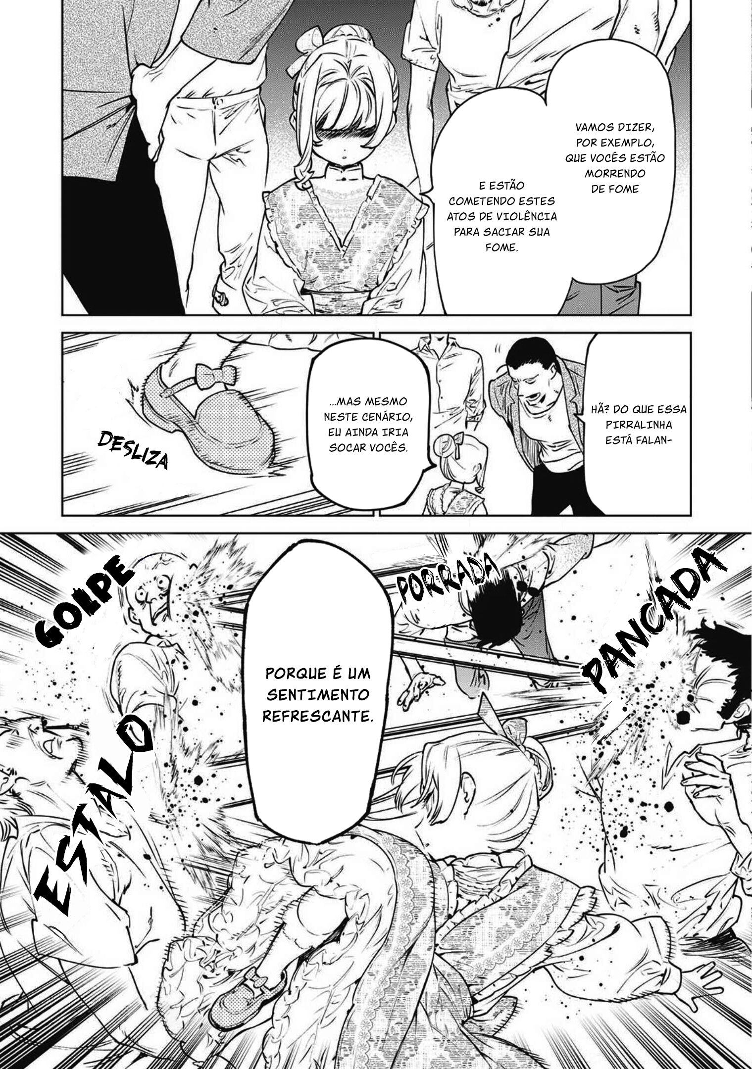 Enquanto a multidão vaiava e gritava insultos, e aquele rapaz bonito disparava suas ofensas, a palma da mão dela girou como uma furadeira e o chão do salão de baile ficou manchado de sangue. De seus punhos, o acerto de contas!