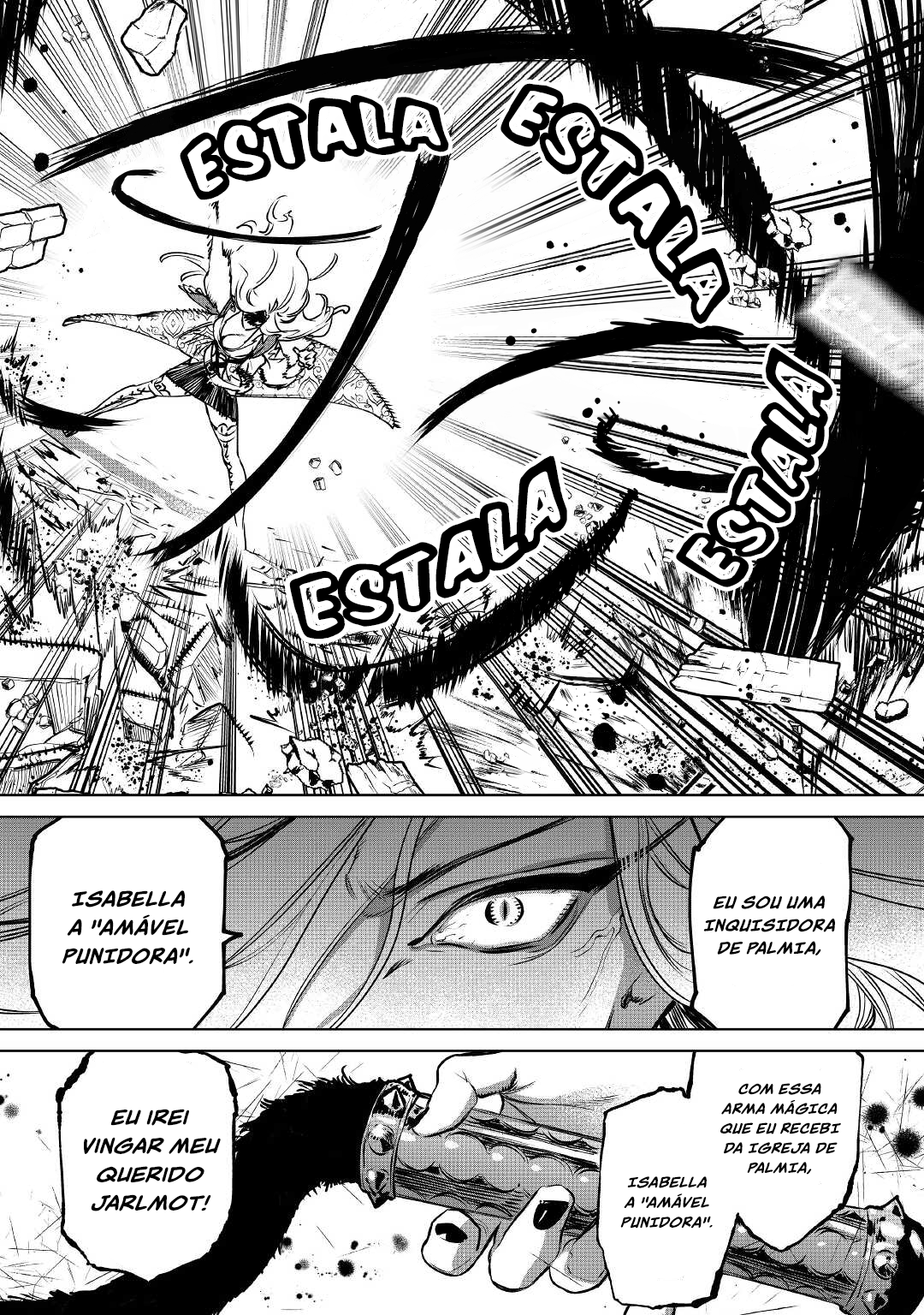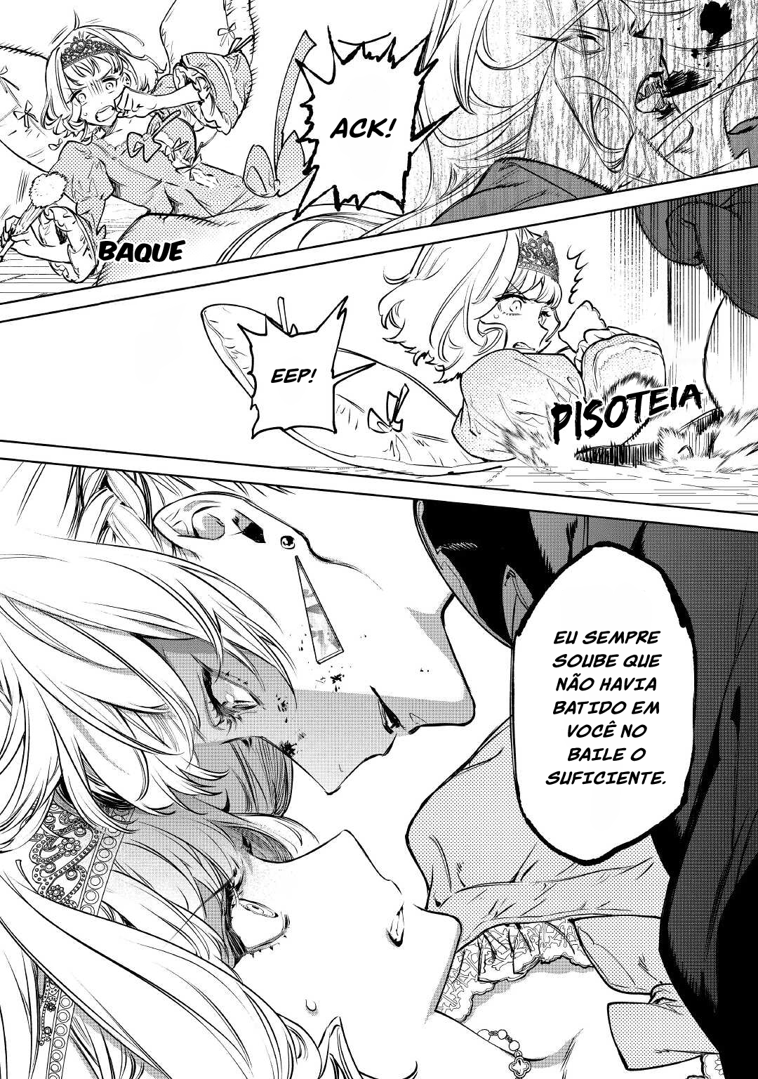 Enquanto a multidão vaiava e gritava insultos, e aquele rapaz bonito disparava suas ofensas, a palma da mão dela girou como uma furadeira e o chão do salão de baile ficou manchado de sangue. De seus punhos, o acerto de contas!