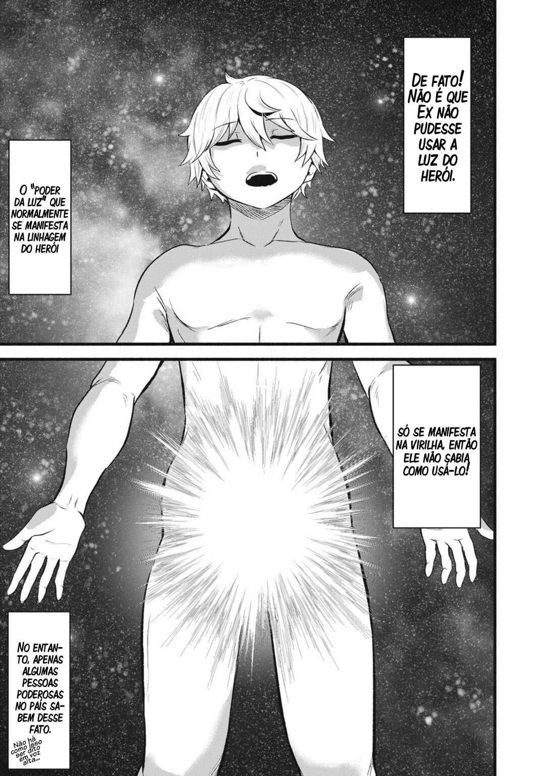 Ex, a failure of a hero whose holy light has yet to manifest, is ridiculed by his peers. But it turns out to have manifested in his dick! How is he supposed to defeat anything with that?! Even when his town is attacked, his crotch simply glows, and he’s unable to do anything! While bearing the weight of these worries, a mysterious shrine appears before him…