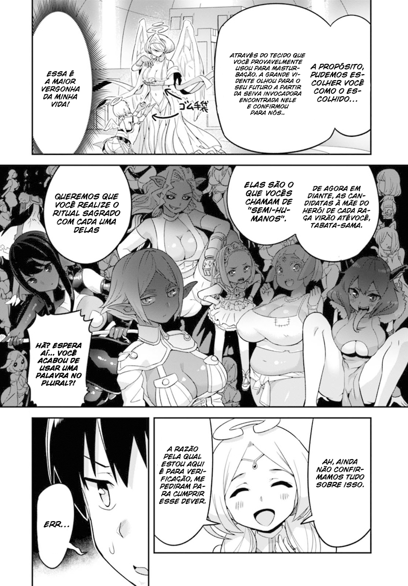 Humans and demihumans live together in peace, and in this world, there's a normal human named Hironori Tabata. One day, an angel named Suzuki Lina went out to find him and said she wants to have sex with him... the reason—? The Demon King will be resurrected in the future and Tabata's son will be the hero that will fight and defeat him.