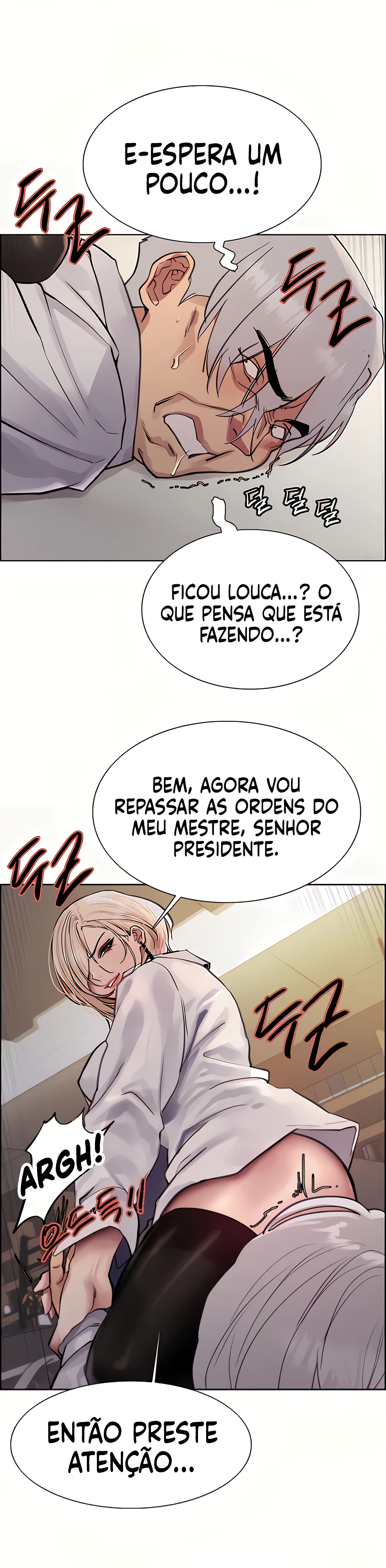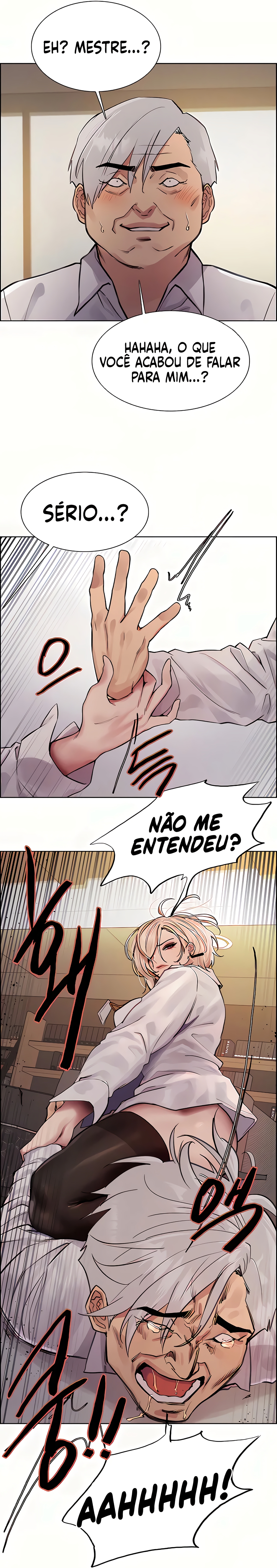 "Como você ousa tentar me bater? Isso é uma punição por tentar encostar um dedo neste corpo!"