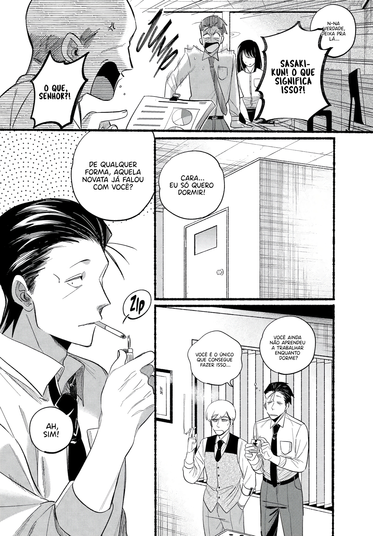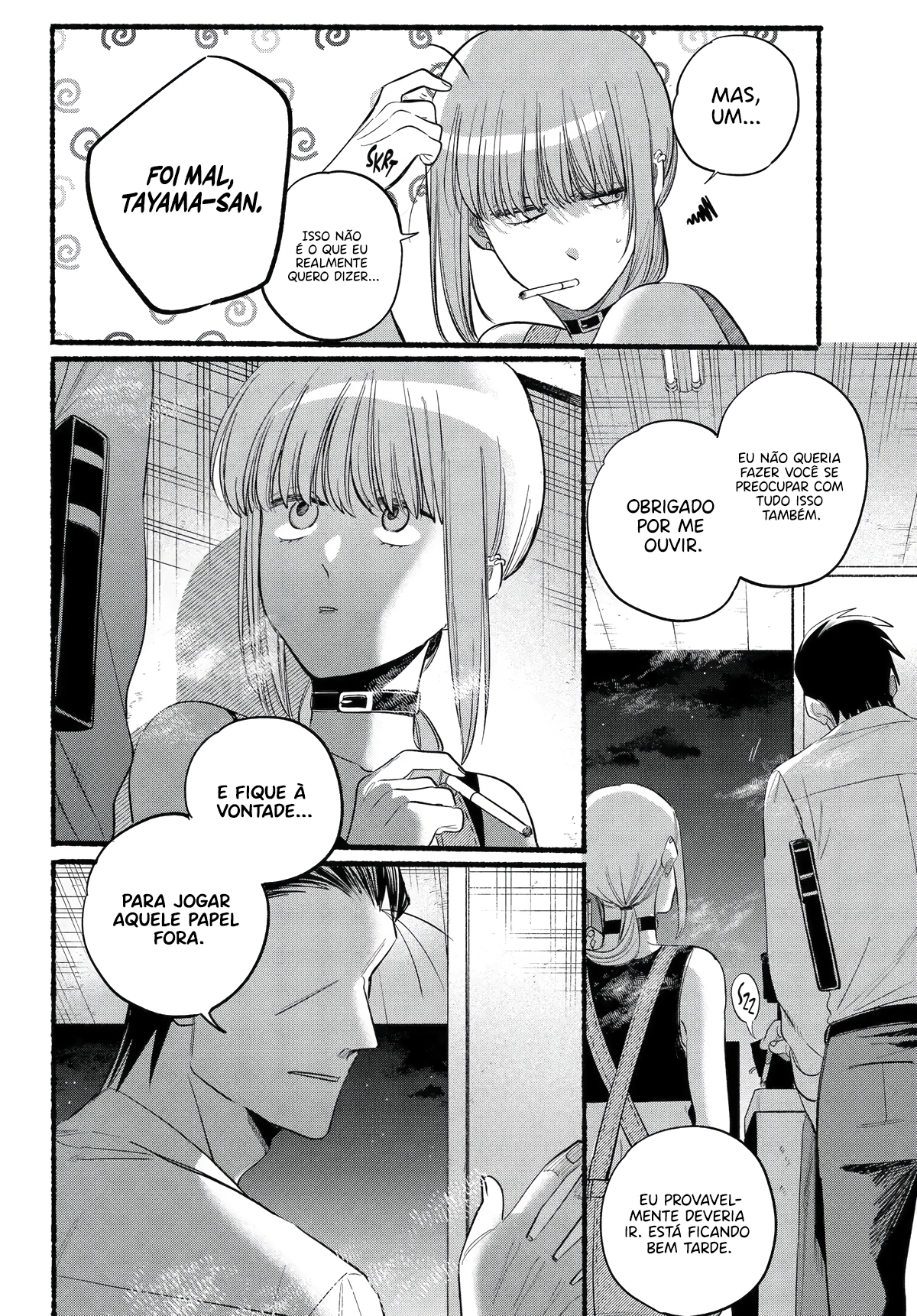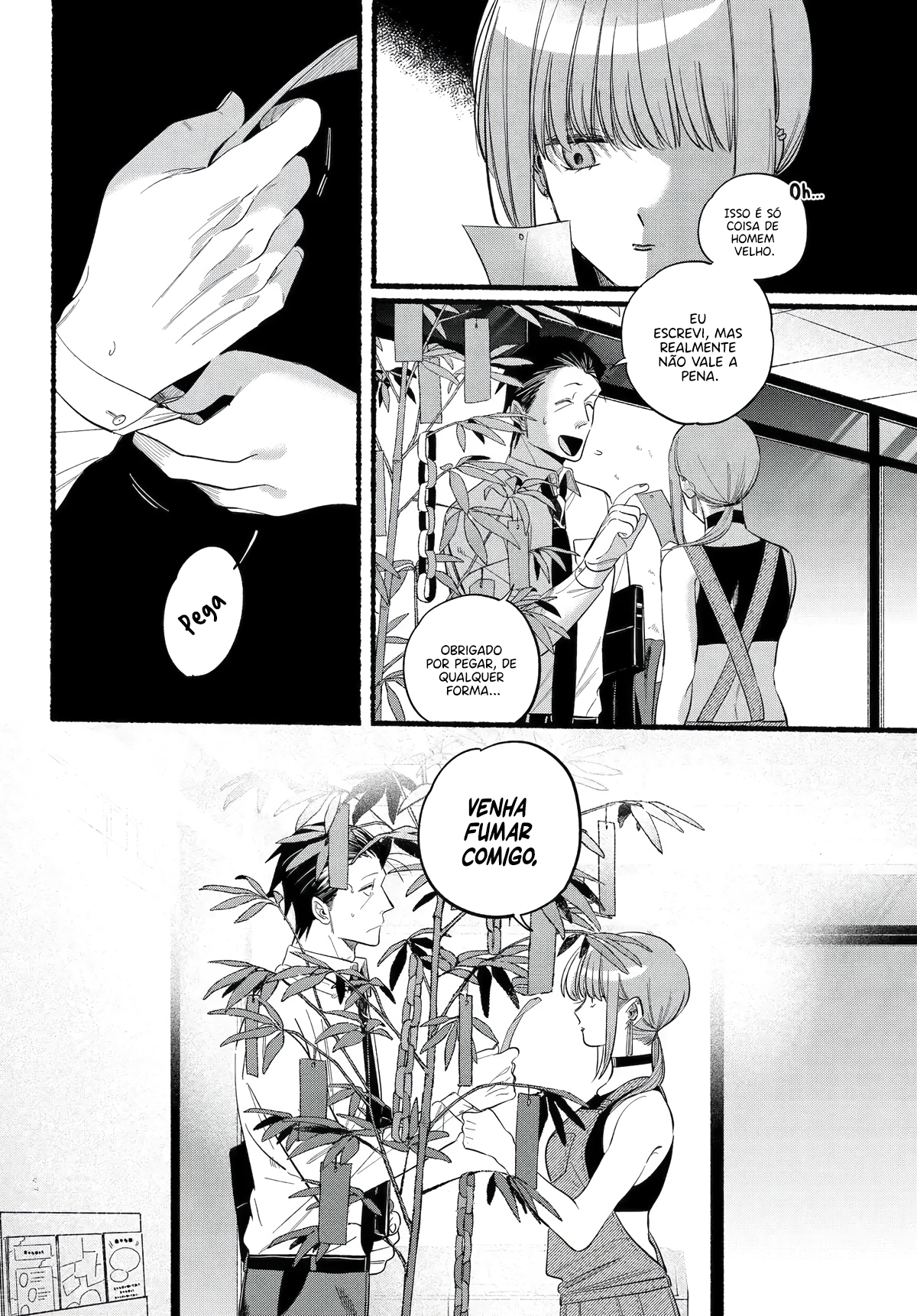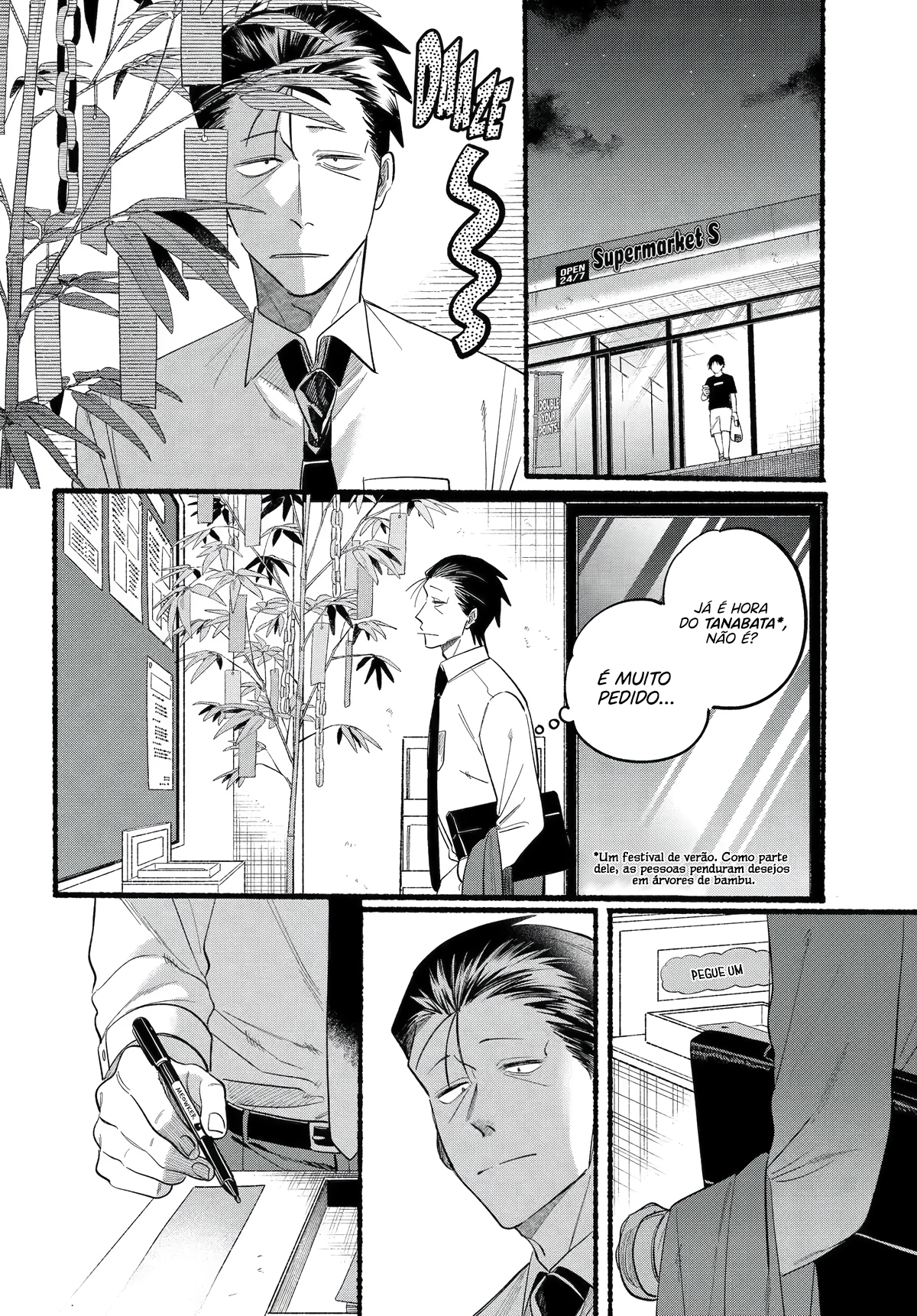 Sasaki, an overworked salaryman, goes through an average stressful day just for a single light at the end of the tunnel: Yamada, the always-cheerful clerk at his favorite convenience store. One day, Sasaki takes an extra amount of time at a company meeting, and by the time he gets to the convenience store Yamada has already clocked out. However, as he leaves, he notices a young woman with piercings smoking behind the store?