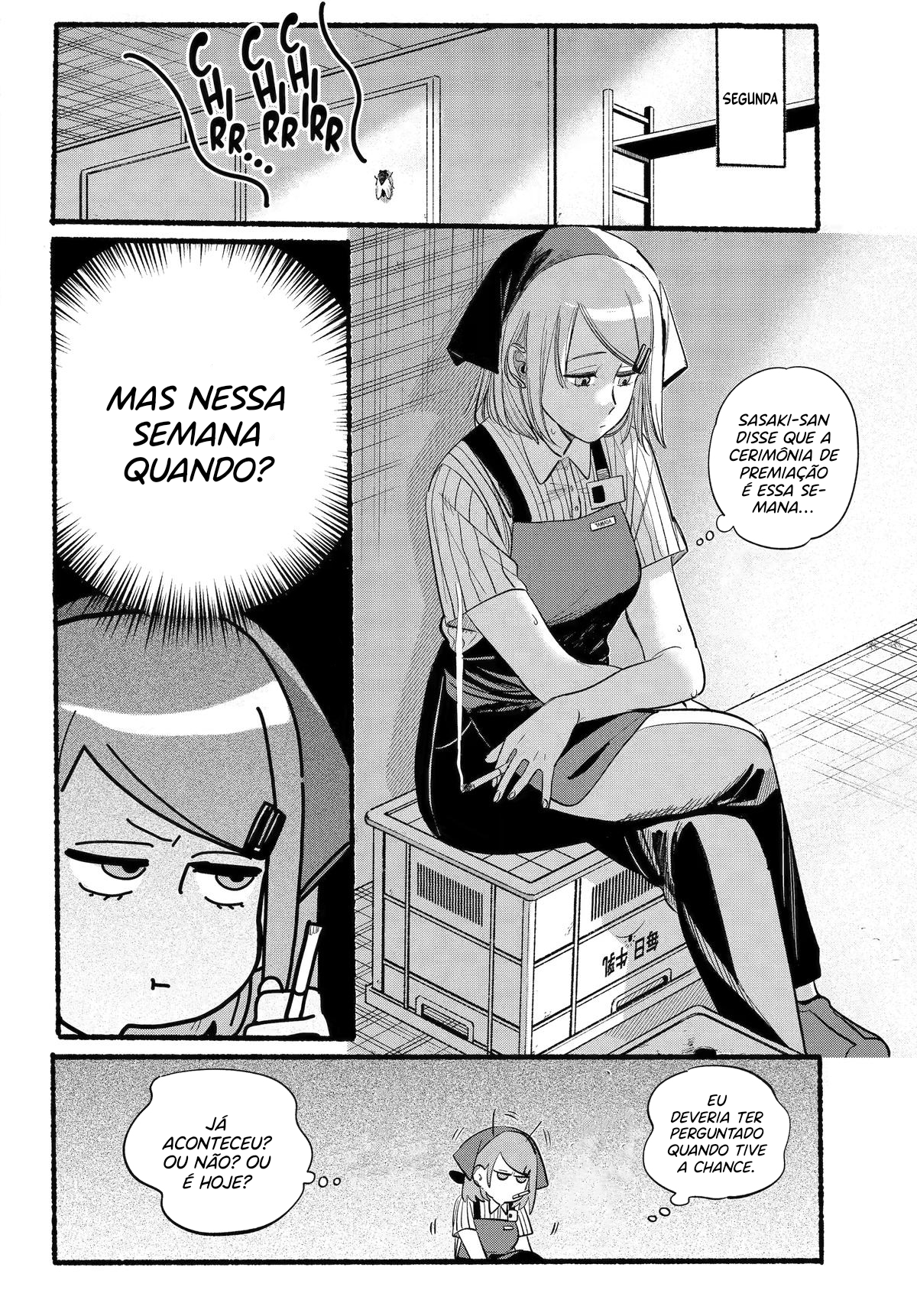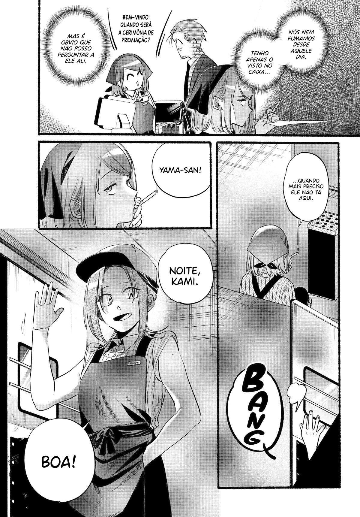 Sasaki, an overworked salaryman, goes through an average stressful day just for a single light at the end of the tunnel: Yamada, the always-cheerful clerk at his favorite convenience store. One day, Sasaki takes an extra amount of time at a company meeting, and by the time he gets to the convenience store Yamada has already clocked out. However, as he leaves, he notices a young woman with piercings smoking behind the store?