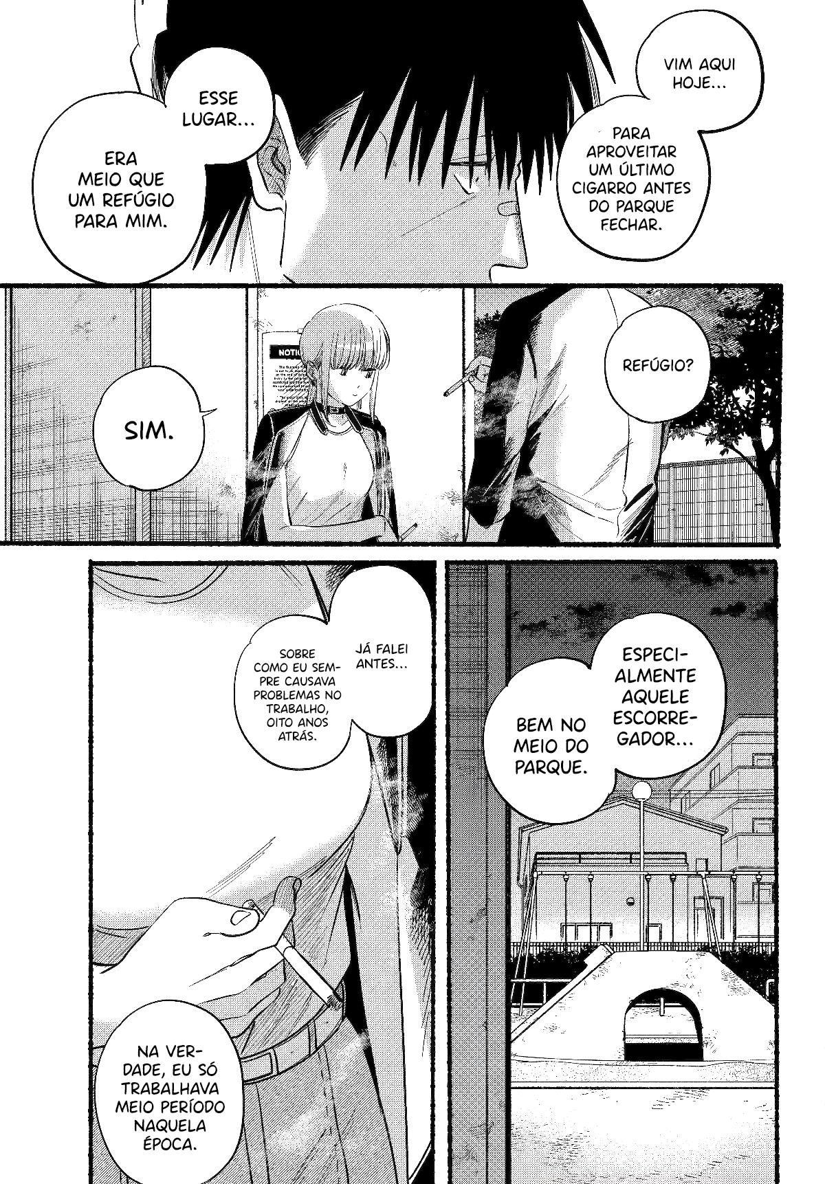 Sasaki, an overworked salaryman, goes through an average stressful day just for a single light at the end of the tunnel: Yamada, the always-cheerful clerk at his favorite convenience store. One day, Sasaki takes an extra amount of time at a company meeting, and by the time he gets to the convenience store Yamada has already clocked out. However, as he leaves, he notices a young woman with piercings smoking behind the store?