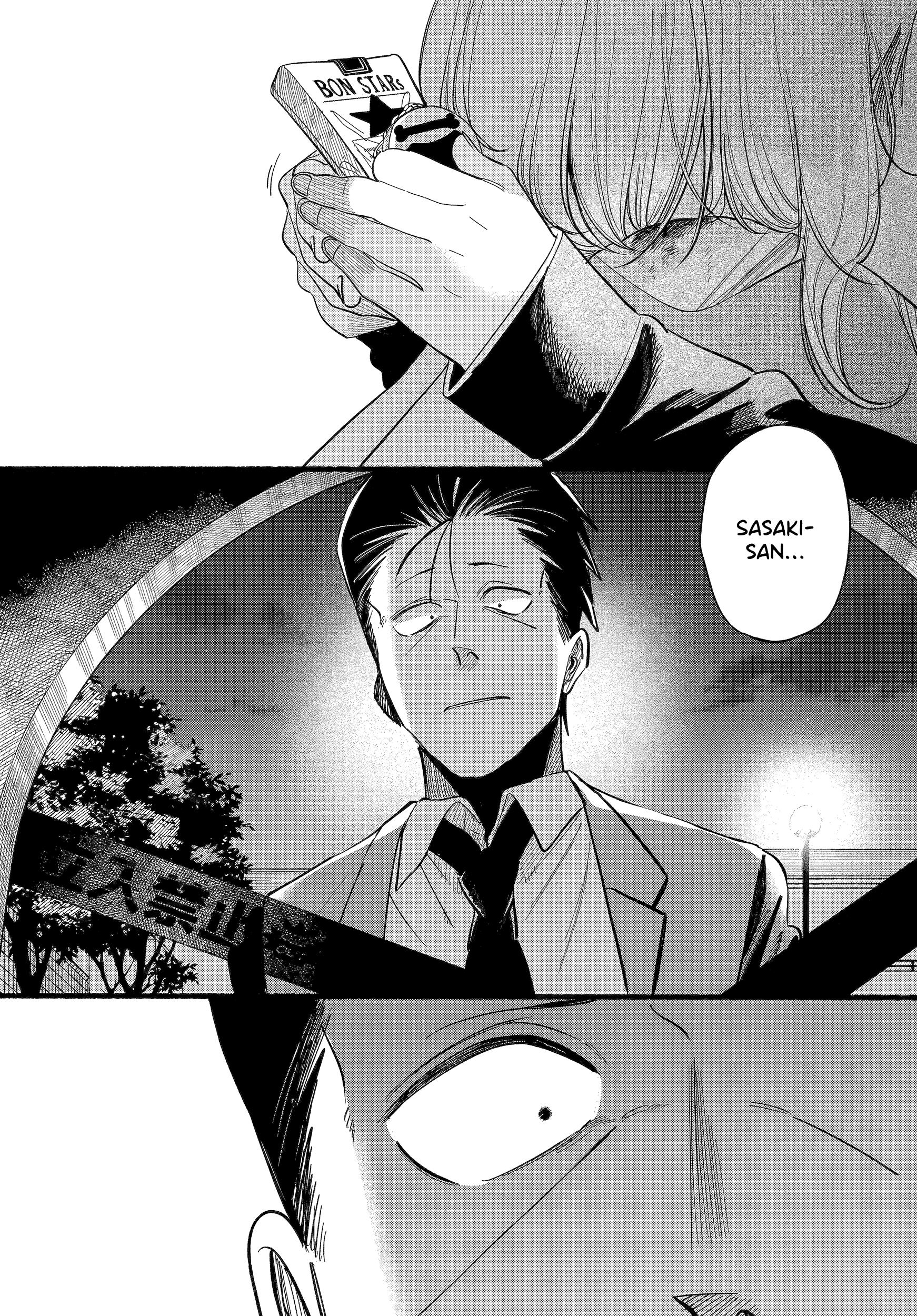 Sasaki, an overworked salaryman, goes through an average stressful day just for a single light at the end of the tunnel: Yamada, the always-cheerful clerk at his favorite convenience store. One day, Sasaki takes an extra amount of time at a company meeting, and by the time he gets to the convenience store Yamada has already clocked out. However, as he leaves, he notices a young woman with piercings smoking behind the store?