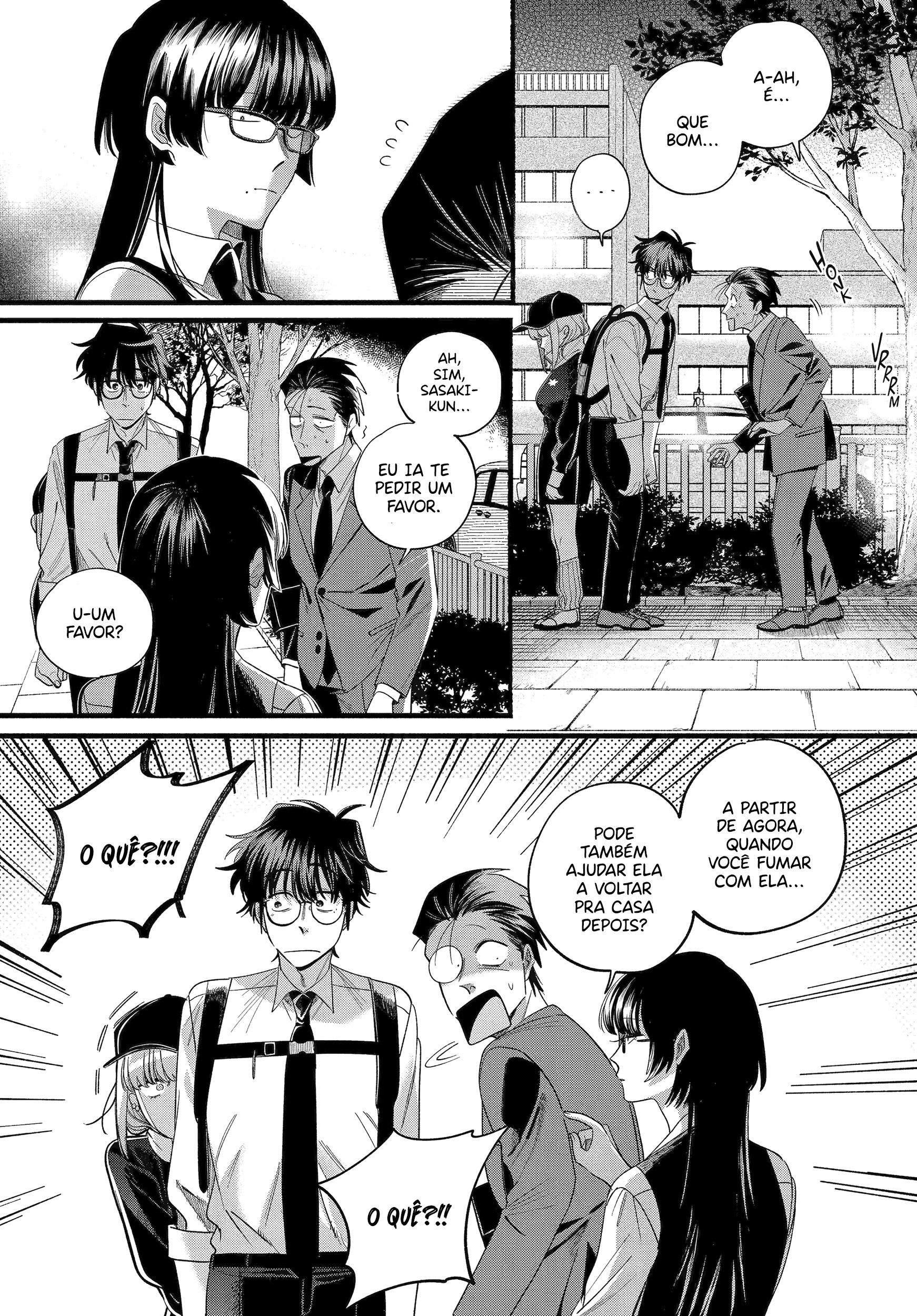 Sasaki, an overworked salaryman, goes through an average stressful day just for a single light at the end of the tunnel: Yamada, the always-cheerful clerk at his favorite convenience store. One day, Sasaki takes an extra amount of time at a company meeting, and by the time he gets to the convenience store Yamada has already clocked out. However, as he leaves, he notices a young woman with piercings smoking behind the store?
