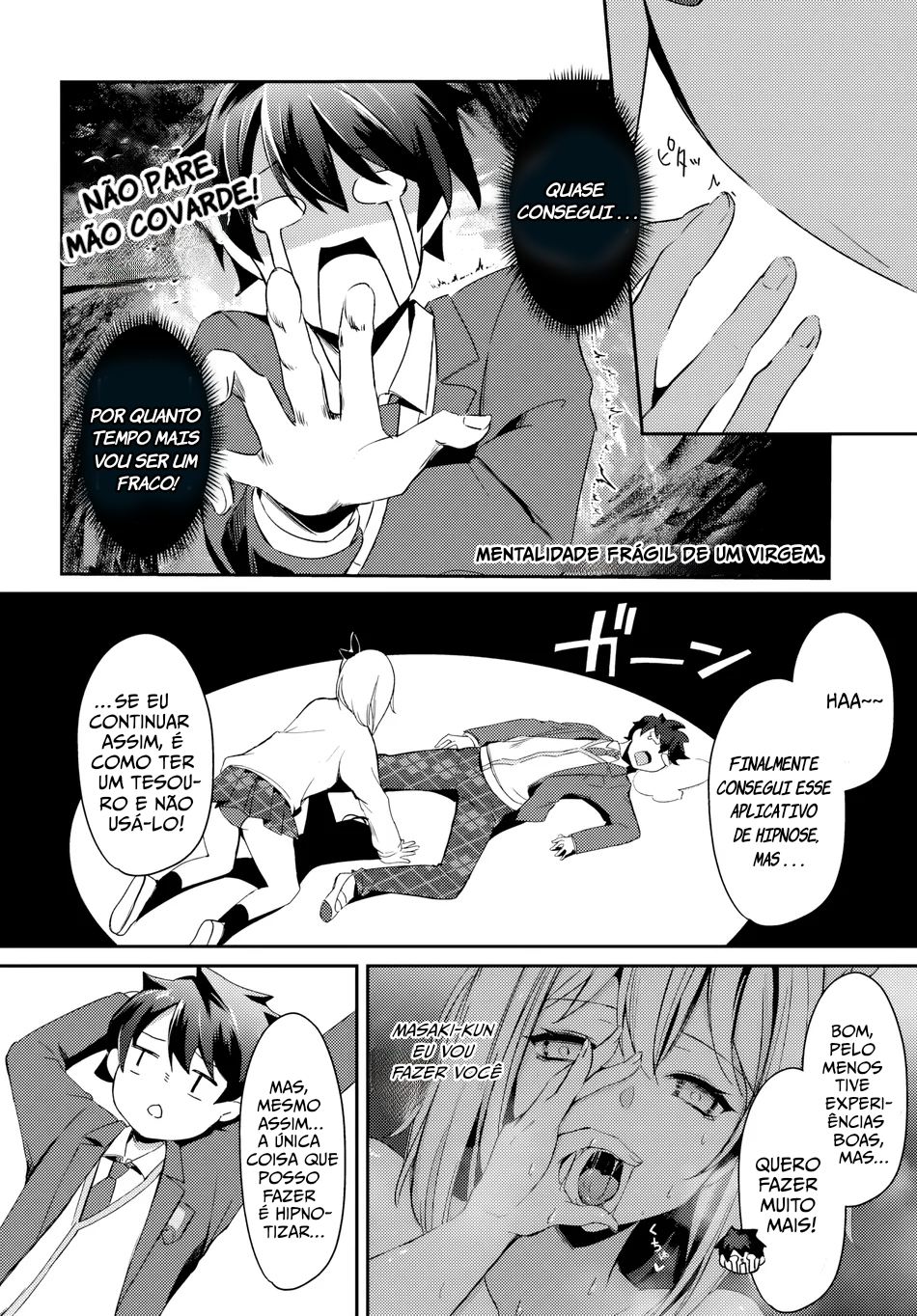 Uma garota linda, uma moça simples com uma beleza escondida, uma jovem elegante e descolada — pelo poder do aplicativo de hipnose, seus segredos que elas não podiam contar a ninguém são revelados! (Eu só queria fazer coisas eróticas...!) O protagonista, que se autoproclama um perdedor, mas no fundo é um bom sujeito, acaba ajudando as pessoas!?
